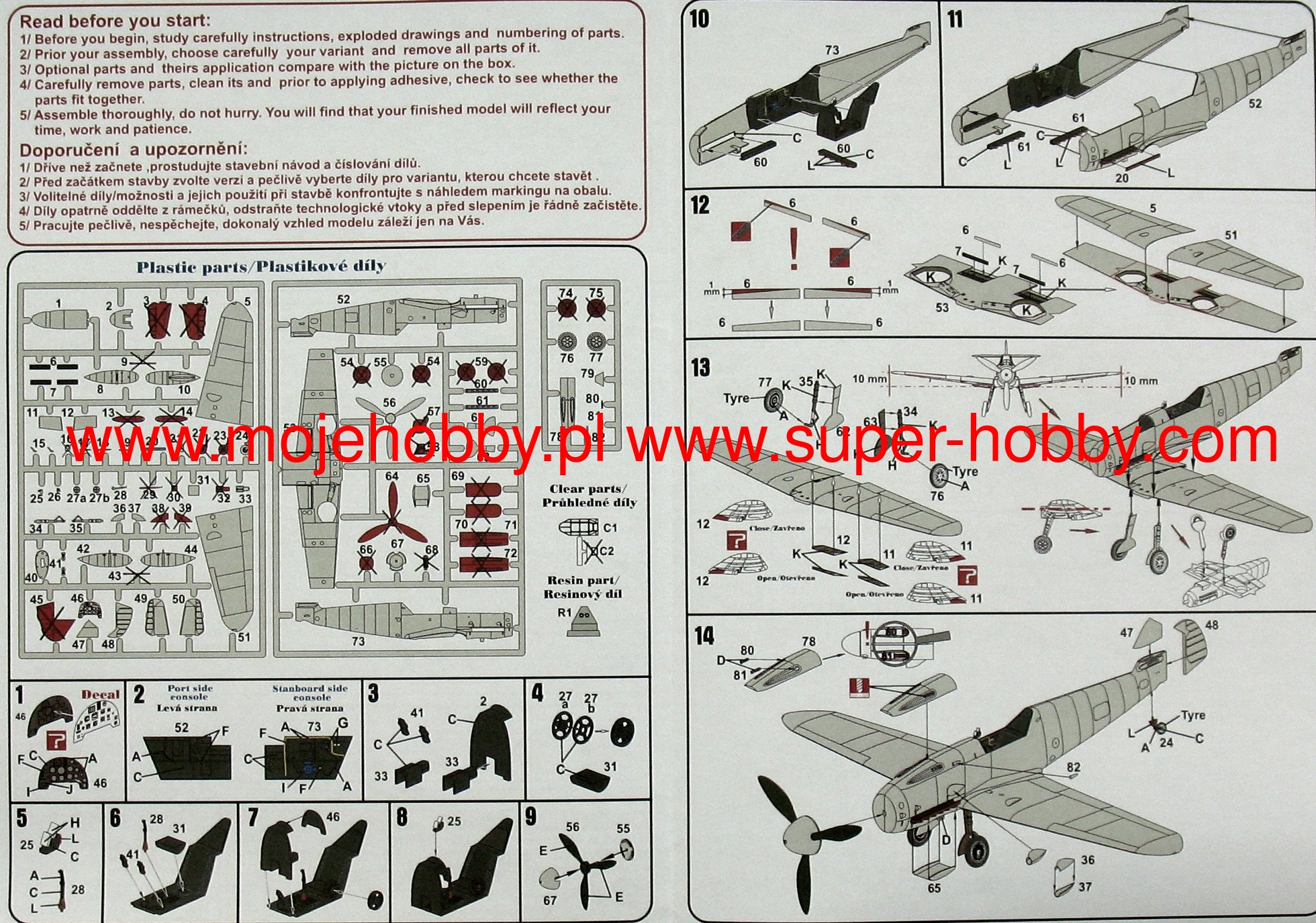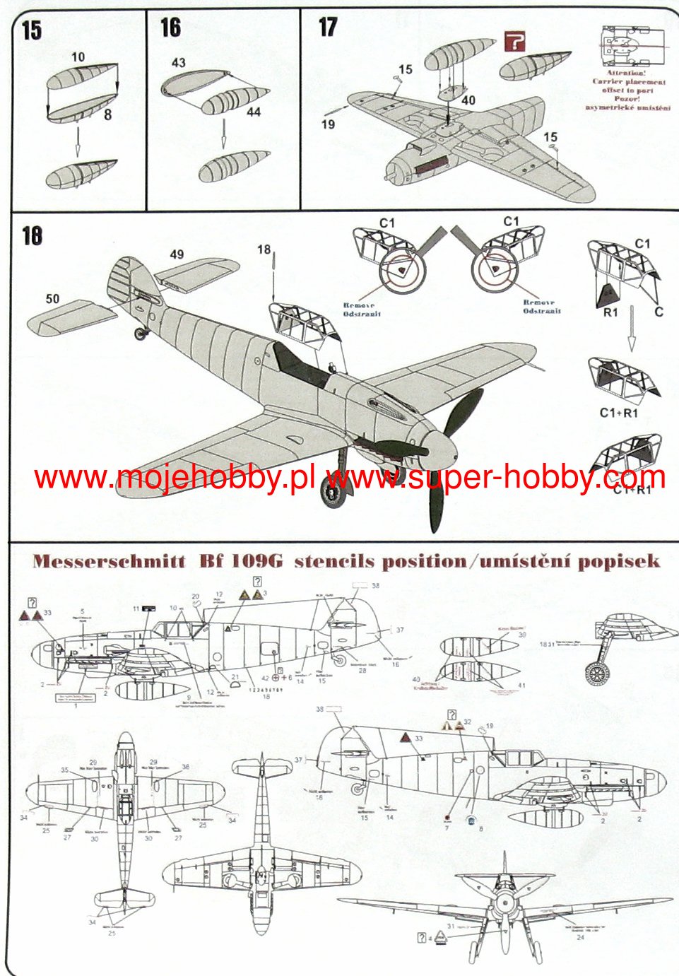 The Messerschmitt Bf-109 is a German metal-structure single-engine fighter in a low wing configuration with a classic tail. It turned out to be the basic and most produced Luftwaffe fighter during World War II. The flight of the prototype took place on May 29, 1935, and serial production continued in the years 1936-1945. In total, it is estimated that a total of about 35,000 Messerschmitt Bf-109 fighters of all varieties were produced, many of which ended up in the Czech and Israeli air forces after the war. The roots of the Bf-109 go back to the competition announced in 1933 by the Luftwaffe for a new fighter plane. In competition with the He-112, the Bf-109 project initially lost, but thanks to Willie Messerschmitt's intrigues, the project could continue and eventually he was the winner of the competition, becoming the Luftwaffe's primary fighter. Several main variants of the Bf-109 were developed in the course of production. The first pre-production series was the Bf-109B (Berta) with different versions of the Junkers Jumo 210 (A or Da) engine. They were tested in Spain from 1937 during the Civil War. The next version is the Bf-109C (Caesar). They had a different engine than the B version, and extensive armament consisting of two 20mm and 2 HP 7.92mm cannons. These machines also fought in the skies of Spain. The third version is the Bf-109D (Dora) with the Junkers Jumo 210 Da or Daimler-Benz DB 600 engine. It fought in the September campaign, but at the turn of 1939/1940 it was replaced by the E version. The most famous model was the Bf-109E (Emil) with a Daimler-Benz 601A or N engine. It was the first to use a three-blade, not a two-blade propeller. Bf-109E fought in the French campaign, over England, and in North Africa and on the Eastern Front. The ace who started his career on the Bf-109E was the famous Adolf Galland. The next version is the Bf-109F (Friedrich), which, according to the German pilots, was the most aerodynamically perfect. It sowed the changed shape of the fuselage, wings, cabin fairings, but no new engine was used. It was put into service at the turn of 1940/1941. As part of the development of the design, further Bf-109 specifications were developed, of which the G (Gustav) version was produced in the largest number of copies. The most important change increasing the machine's performance was the installation of a new 12-cylinder Daimler-Benz DB605A engine with 1475HP. The armament of the Bf-109G was a pair of 13mm machine guns located in the fuselage in front of the cockpit fairing, and the MG151 20mm or heavier MK108 30mm cannon. The last mass-produced version was the Bf-109K (Kurfirst), which production started in October 1944. A Daimler-Benz DB 605DB or DC unit was used as the engine. The Bf-109K was the fastest version produced during World War II, reaching up to 730 km / h. Apart from that, two versions were created - H and Z, but they were rather experimental versions and their mass production did not start. Subsequent improvements in propulsion and armament made the Messerschmitt Bf-109 one of the most dangerous fighters of World War II, and at the same time showed the great potential of the slightly angular airframe created by Willi Messerschmitt. Technical data (version Bf-109 G-6): length: 8.95 m, wingspan: 9.92 m, height: 2.6 m, maximum speed: 640 km / h, rate of climb: 17 m / s, maximum range: 850 km, maximum ceiling 12000m, armament: fixed - 2 MG131 13mm machine guns and 1 MG151 20mm cannon, suspended - 250 kg bombs, or 2 Wfr missile launchers. Gr. 21.