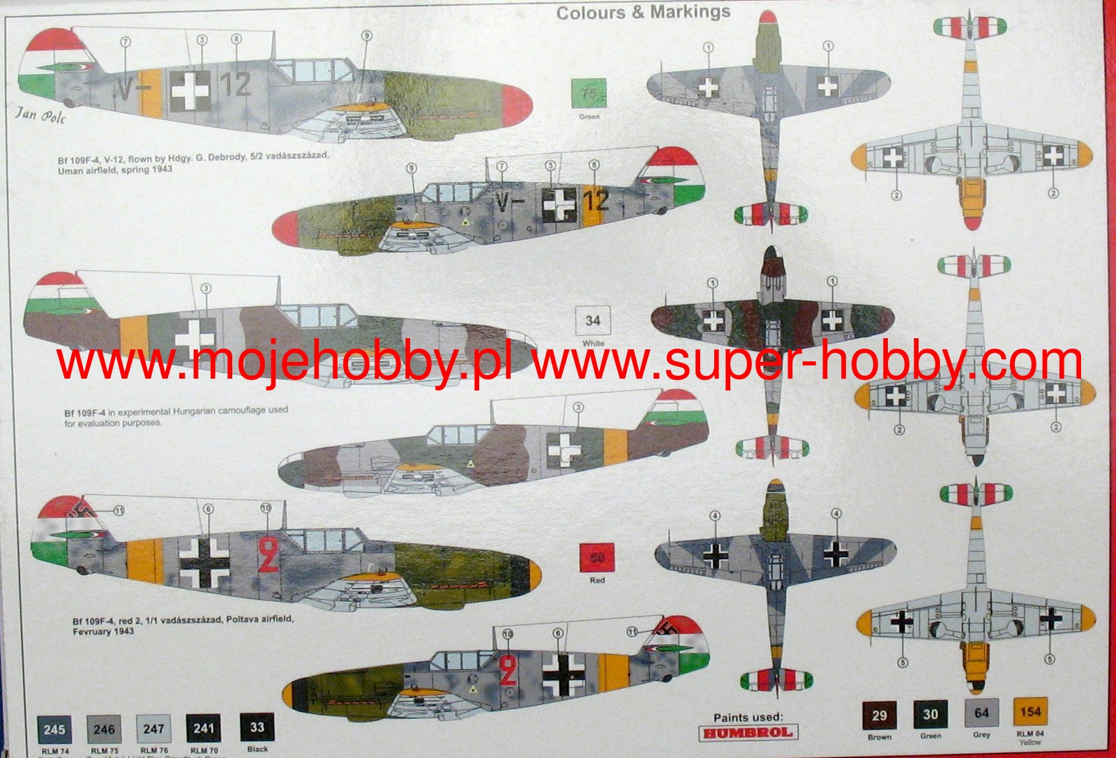 The Messerschmitt Bf-109 is a German metal-structure single-engine fighter in a low wing configuration with a classic tail. It turned out to be the basic and most produced Luftwaffe fighter during World War II. The flight of the prototype took place on May 29, 1935, and serial production continued in the years 1936-1945. In total, it is estimated that a total of about 35,000 Messerschmitt Bf-109 fighters of all varieties were produced, many of which ended up in the Czech and Israeli air forces after the war. The roots of the Bf-109 go back to the competition announced in 1933 by the Luftwaffe for a new fighter plane. In competition with the He-112, the Bf-109 project initially lost, but thanks to Willie Messerschmitt's intrigues, the project could continue and eventually he was the winner of the competition, becoming the Luftwaffe's primary fighter. Several main variants of the Bf-109 were developed in the course of production. The first pre-production series was the Bf-109B (Berta) with different versions of the Junkers Jumo 210 (A or Da) engine. They were tested in Spain from 1937 during the Civil War. The next version is the Bf-109C (Caesar). They had a different engine than the B version, and extensive armament consisting of two 20mm and 2 HP 7.92mm cannons. These machines also fought in the skies of Spain. The third version is the Bf-109D (Dora) with the Junkers Jumo 210 Da or Daimler-Benz DB 600 engine. It fought in the September campaign, but at the turn of 1939/1940 it was replaced by the E version. The most famous model was the Bf-109E (Emil) with a Daimler-Benz 601A or N engine. It was the first to use a three-blade, not a two-blade propeller. Bf-109E fought in the French campaign, over England, and in North Africa and on the Eastern Front. The ace who started his career on the Bf-109E was the famous Adolf Galland. The next version is the Bf-109F (Friedrich), which, according to the German pilots, was the most aerodynamically perfect. It sowed the changed shape of the fuselage, wings, cabin fairings, but no new engine was used. It was put into service at the turn of 1940/1941. As part of the development of the design, further Bf-109 specifications were developed, of which the G (Gustav) version was produced in the largest number of copies. The most important change increasing the machine's performance was the installation of a new 12-cylinder Daimler-Benz DB605A engine with 1475HP. The armament of the Bf-109G was a pair of 13mm machine guns located in the fuselage in front of the cockpit fairing, and the MG151 20mm or heavier MK108 30mm cannon. The last mass-produced version was the Bf-109K (Kurfirst), which production started in October 1944. A Daimler-Benz DB 605DB or DC unit was used as the engine. The Bf-109K was the fastest version produced during World War II, reaching up to 730 km / h. Apart from that, two versions were created - H and Z, but they were rather experimental versions and their mass production did not start. Subsequent improvements in propulsion and armament made the Messerschmitt Bf-109 one of the most dangerous fighters of World War II, and at the same time showed the great potential of the slightly angular airframe created by Willi Messerschmitt. Technical data (version Bf-109 G-6): length: 8.95 m, wingspan: 9.92 m, height: 2.6 m, maximum speed: 640 km / h, rate of climb: 17 m / s, maximum range: 850 km, maximum ceiling 12000m, armament: fixed - 2 MG131 13mm machine guns and 1 MG151 20mm cannon, suspended - 250 kg bombs, or 2 Wfr missile launchers. Gr. 21.