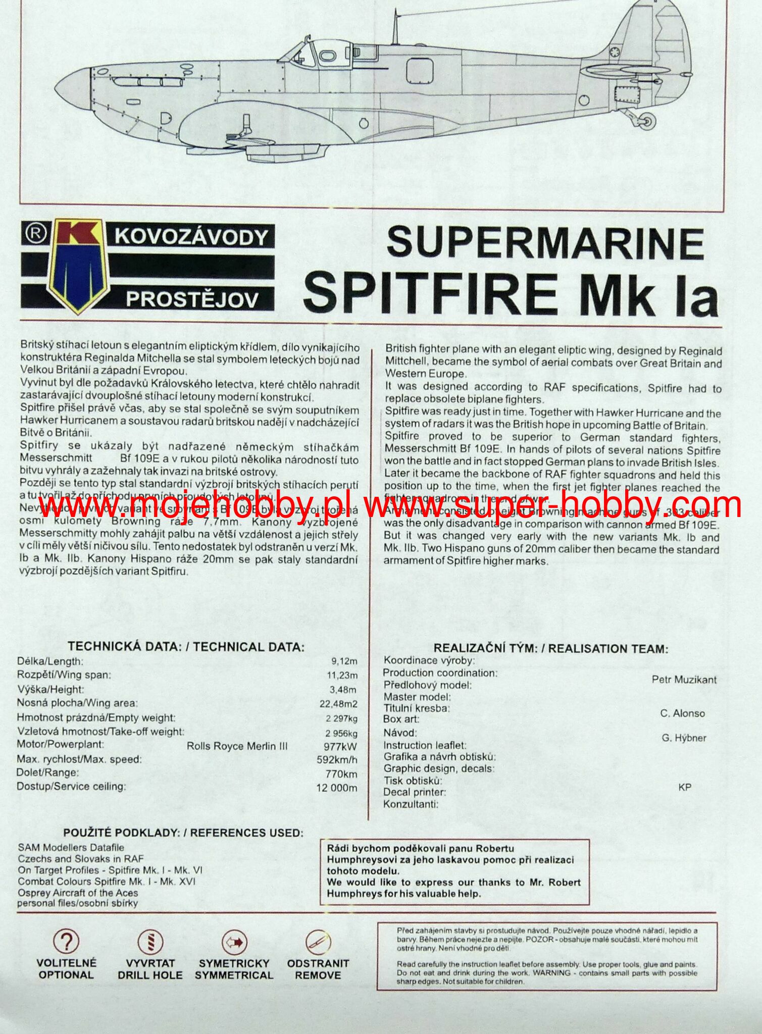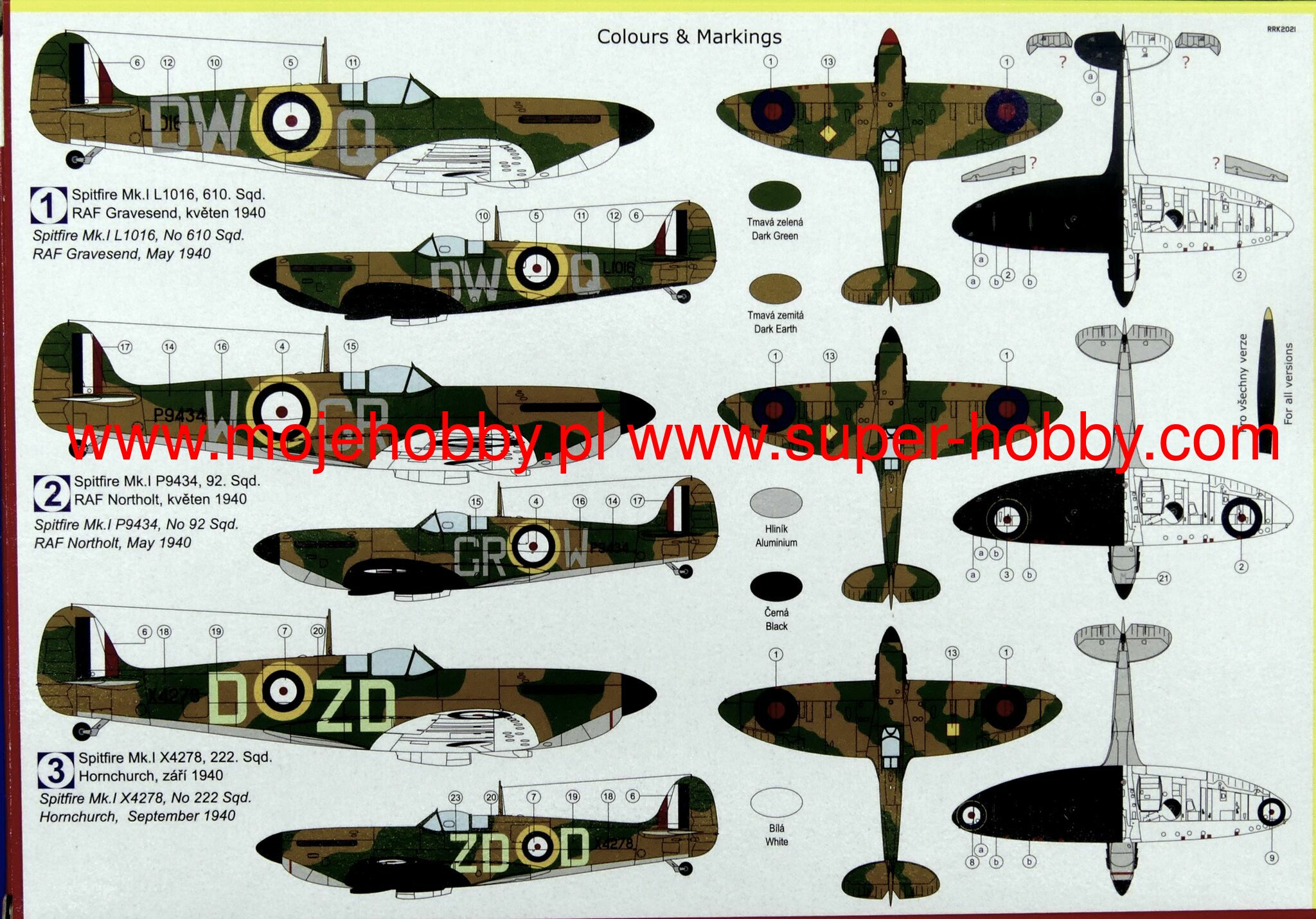 Supermarine Spitfire is probably the most famous British fighter from the Second World War. It was an all-metal machine with a low wing configuration, characteristic elliptical wings, a classic tail and a retractable landing gear. The prototype flight took place on March 5, 1936. The Spitfire proved to be the RAF's staple of the war, which continued to do well after the war, remaining in production for 10 years. The history of the Spitfire began on the drawing desk of RJ Mitchell, Supermarine's lead designer. The first machines went to RAF units in 1938, but when the Battle of Britain began in the summer of 1940, there were already 19 squadrons of modern fighters at the airfields - together with the slightly older Hurricanes of the Islands, 600 aircraft were defending. With the expansion of hostilities, the Spitfire served wherever the RAF operated in the Far East, North Africa and Italy, during the Normandy landings and fighting in France, and finally during the operation in Germany in 1945. For many Britons, he became a symbol of victory in World War II. This wonderful machine has at least a dozen production versions. The most important of them are, among others the first mass-produced Spitfire Mk.I powered by a 1030hp Rolls-Royce Merlin II engine. It was above all this machine that made such an excellent contribution to the Battle of Britain. Many versions of this model have been developed, including PR Mk IA (reconnaissance version) or PR.IG (armed reconnaissance version). Another interesting version was the Spitfire Mk.V with a Rolls-Royce Merlin 45 engine with 1440HP. Later, Merlin 50 engines were also assembled. Serial production of this version started in 1941 and was the RAF's response to the appearance of the Messerschmitt Bf-109F. Another very successful version is the Spitfire Mk.IX, powered by a Merlin 61 engine with a 4-blade propeller. It was created as an opponent to the Focke-Wulf Fw-190 and was put into production at the end of 1941. This version was modified many times and, for example, in 1944 it got a new gyro sight, an enlarged rudder or a different wing system. Another major version is the Spitfire Mk.XIV with a Rolls-Royce Griffon 61 engine and a five-bladed propeller. Serial production started in October 1943. One of the last series produced was the Mk.21 version. This version had a Griffon 61 engine, a strongly reinforced structure and sheathing, the wings were extended, increasing their flying surface. Mass production started in March 1945. Technical data (Mk.XIV version): length: 9.14m, wingspan: 11.23m, height: 3.05m, maximum speed: 717km / h, rate of climb: 18.5m / s, practical ceiling: 13,200m, range maximum: 1815 km, armament: fixed - 4 7.7mm machine guns and 2 20mm Hispano Mk II cannons, suspended - up to 225 kg of bombs.
