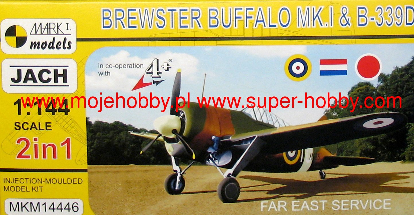 Brewster B-339 Buffalo американский истребитель среднего крыла времен начала Второй мировой войны. В ВМС США самолет летал под обозначениями: F2A-1, F2A-2 и F2A-3, а вариант B-239 предназначался только для экспорта и адаптировался под требования заказчика, где в основном дорабатывались стойки шасси и задний крюк снят. Полет опытного образца состоялся в декабре 1937 г., а в следующем году машина отправилась в линейные части. B-339 быстро завоевал репутацию легкого в управлении и маневренного истребителя, но почти во всех областях он уступал своему потенциальному противнику Mitsubishi A6M Zero. Несмотря на экспорт в страны Европы, мин. В Финляндии и Великобритании эта машина быстро устарела в результате столкновения, например, с Me 109E. Всего было построено около 500 машин всех модификаций. Технические данные: Максимальная скорость: 517 км/ч, скорость набора высоты: 12,4 м/с, рабочий потолок 10100 м, максимальная дальность полета: 1553 км, вооружение: стационарное 4 пулемета Browning M2, кал.12,7 мм.