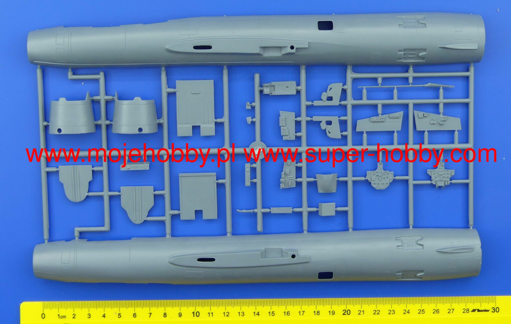 The Sukhoi Su-7 is a Soviet fighter-bomber with oblique wings, full metal structure with a classic tail. The drive was provided by a single Lulka AL-7F1 engine. The flight of the prototype took place on September 8, 1955. It entered the line in 1958. The first production version was the machine designated as Su-7, acting as a fighter plane. However, a very interesting tactical variant of the Su-7B quickly appeared. At the end of the years. 50, the Soviet command promoted the concept of "atomization" and "rocketization" of the battlefield. The main role of carrying atomic charges on the tactical battlefield was to be played by ground-to-ground missiles and barrel artillery, but for the elimination of particularly mobile cells (columns of troops) or requiring a precise strike (nuclear weapons of the enemy, secured command and communication stations), it was intended to be used as carrier of a high-speed supersonic plane. Due to the high speed, large payload, "strong" engine and the appropriate range, and equally importantly, the need to quickly put the machine into service (before the Su-7B, provisionally modified Mig-15 / -17 was used for this role), the choice fell on the Sukhoi design. In the mid-1960s, the plane was recommended for serial production of the Suchoja Su-7B, the first units left the production line in the second half of this year. Later, new versions were created, such as the Su-7BM, with additional rocket launch engines, the Su-7UB, i.e. a training version with a two-person cabin, or the Su-7BK or Su-7BKL versions. Technical data: length: 16.8m, wingspan: 8.77m, height: 4.8m, maximum speed: 1.6Ma, climb speed: 152m / s, practical ceiling: 15500m, maximum range: 1450km, armament: permanent- 2 NR-30 30mm cannons, suspended - up to 4000 kg of cargo on 4-6 under-wing pylons.