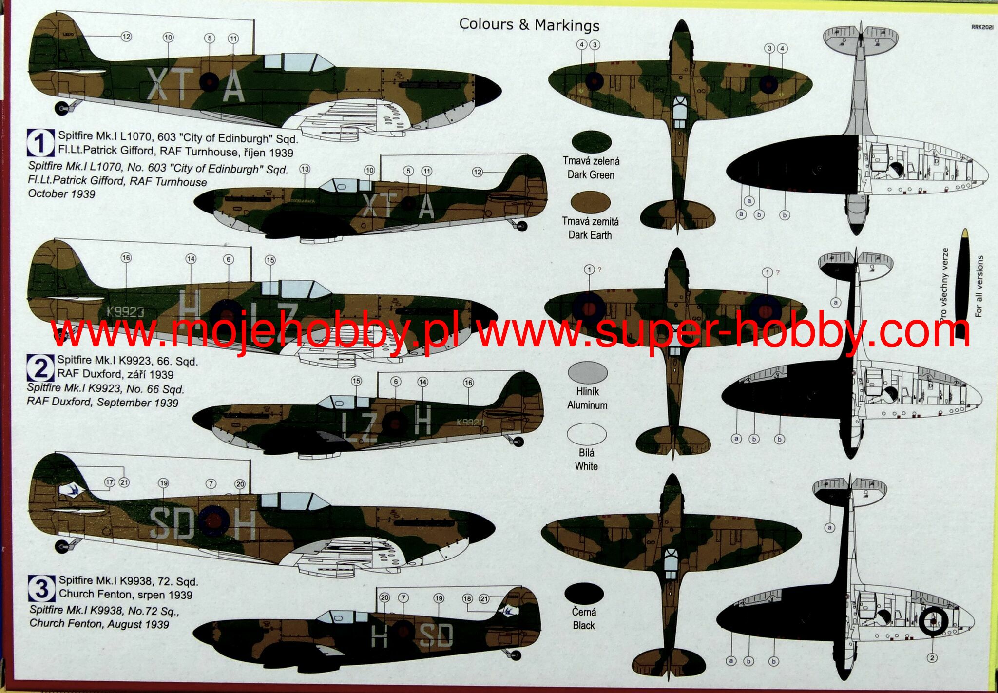 Supermarine Spitfire is probably the most famous British fighter from the Second World War. It was an all-metal machine with a low wing configuration, characteristic elliptical wings, a classic tail and a retractable landing gear. The prototype flight took place on March 5, 1936. The Spitfire proved to be the RAF's staple of the war, which continued to do well after the war, remaining in production for 10 years. The history of the Spitfire began on the drawing desk of RJ Mitchell, Supermarine's lead designer. The first machines went to RAF units in 1938, but when the Battle of Britain began in the summer of 1940, there were already 19 squadrons of modern fighters at the airfields - together with the slightly older Hurricanes of the Islands, 600 aircraft were defending. With the expansion of hostilities, the Spitfire served wherever the RAF operated in the Far East, North Africa and Italy, during the Normandy landings and fighting in France, and finally during the operation in Germany in 1945. For many Britons, he became a symbol of victory in World War II. This wonderful machine has at least a dozen production versions. The most important of them are, among others the first mass-produced Spitfire Mk.I powered by a 1030hp Rolls-Royce Merlin II engine. It was above all this machine that made such an excellent contribution to the Battle of Britain. Many versions of this model have been developed, including PR Mk IA (reconnaissance version) or PR.IG (armed reconnaissance version). Another interesting version was the Spitfire Mk.V with a Rolls-Royce Merlin 45 engine with 1440HP. Later, Merlin 50 engines were also assembled. Serial production of this version started in 1941 and was the RAF's response to the appearance of the Messerschmitt Bf-109F. Another very successful version is the Spitfire Mk.IX, powered by a Merlin 61 engine with a 4-blade propeller. It was created as an opponent to the Focke-Wulf Fw-190 and was put into production at the end of 1941. This version was modified many times and, for example, in 1944 it got a new gyro sight, an enlarged rudder or a different wing system. Another major version is the Spitfire Mk.XIV with a Rolls-Royce Griffon 61 engine and a five-bladed propeller. Serial production started in October 1943. One of the last series produced was the Mk.21 version. This version had a Griffon 61 engine, a strongly reinforced structure and sheathing, the wings were extended, increasing their flying surface. Mass production started in March 1945. Technical data (Mk.XIV version): length: 9.14m, wingspan: 11.23m, height: 3.05m, maximum speed: 717km / h, rate of climb: 18.5m / s, practical ceiling: 13,200m, range maximum: 1815 km, armament: fixed - 4 7.7mm machine guns and 2 20mm Hispano Mk II cannons, suspended - up to 225 kg of bombs.