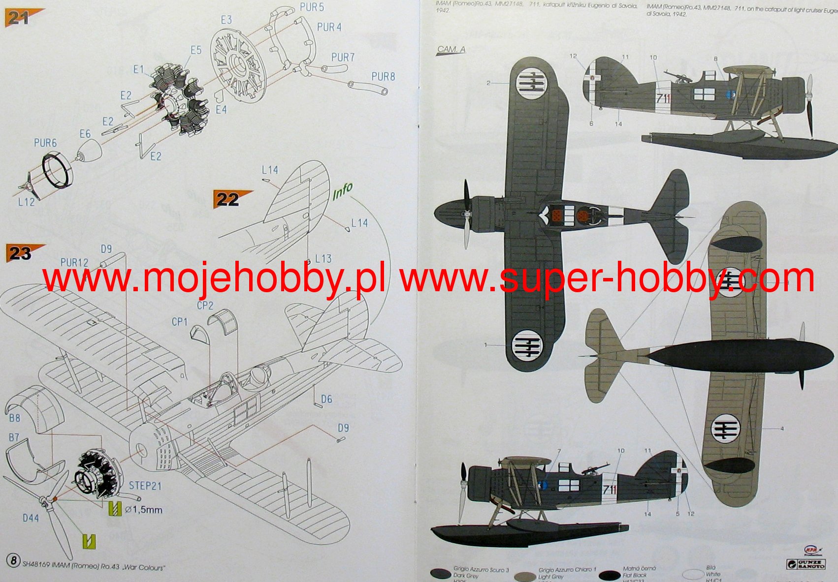 IMAM Ro.43 był włoskim wodnosamolotem rozpoznawczym w układzie dwupłata, o konstrukcji mieszanej. Napęd zapewniał pojedynczy silnik Piaggio P.X R o mocy 700 KM. Oblot prototypu miał miejsce w 1934 roku. Produkcja seryjna rozpoczęła się w 1935 roku i trwała do 1941 roku, kończąc się wytworzeniem ok. 190 maszyn tego typu. Uzbrojenie samolotu stanowiły 2 karabiny maszynowe Breda-SAFAT kal. 7,7 mm. IMAM Ro.43 powstał w odpowiedzi na zgłaszane przez włoską marynarkę wojenną (wł. Regia Marina) zapotrzebowanie na nowy wodnosamolot mogący startować z katapulty okrętowej. Przy projektowaniu Ro.43 wykorzystano doświadczenie oraz wiele elementów samolotu Ro.37. Po krótkim okresie prób i testów, wodnosamoloty Ro.43 weszły do prouckji seryjnej i bardzo szybko weszły na wyposażenie dużych okrętów Regia Marina. Niestety okazało się, że maszyna ta jest konstrukcją niedopracowaną, o słabych osiągach oraz przeciętnej dzielności morskiej (ogromne problemy ze startem i lądowaniem na wzburzonym morzu). Do 1941 roku zakończono produkcję Ro.43 i zaczęto je zastępować specjalnie dostosowanymi do operowania z okrętów myśliwcami Reggiane Re.2000. Maszyny IMAM Ro.43 były wykorzystywane w toku działań w basenie Morza Śródziemnego w latach 1940-1943, m.in. w początkowej fazie bitwy koło przylądka Matapan w marcu 1941 roku. Co oprócz modelu będę potrzebować do jego sklejenia?