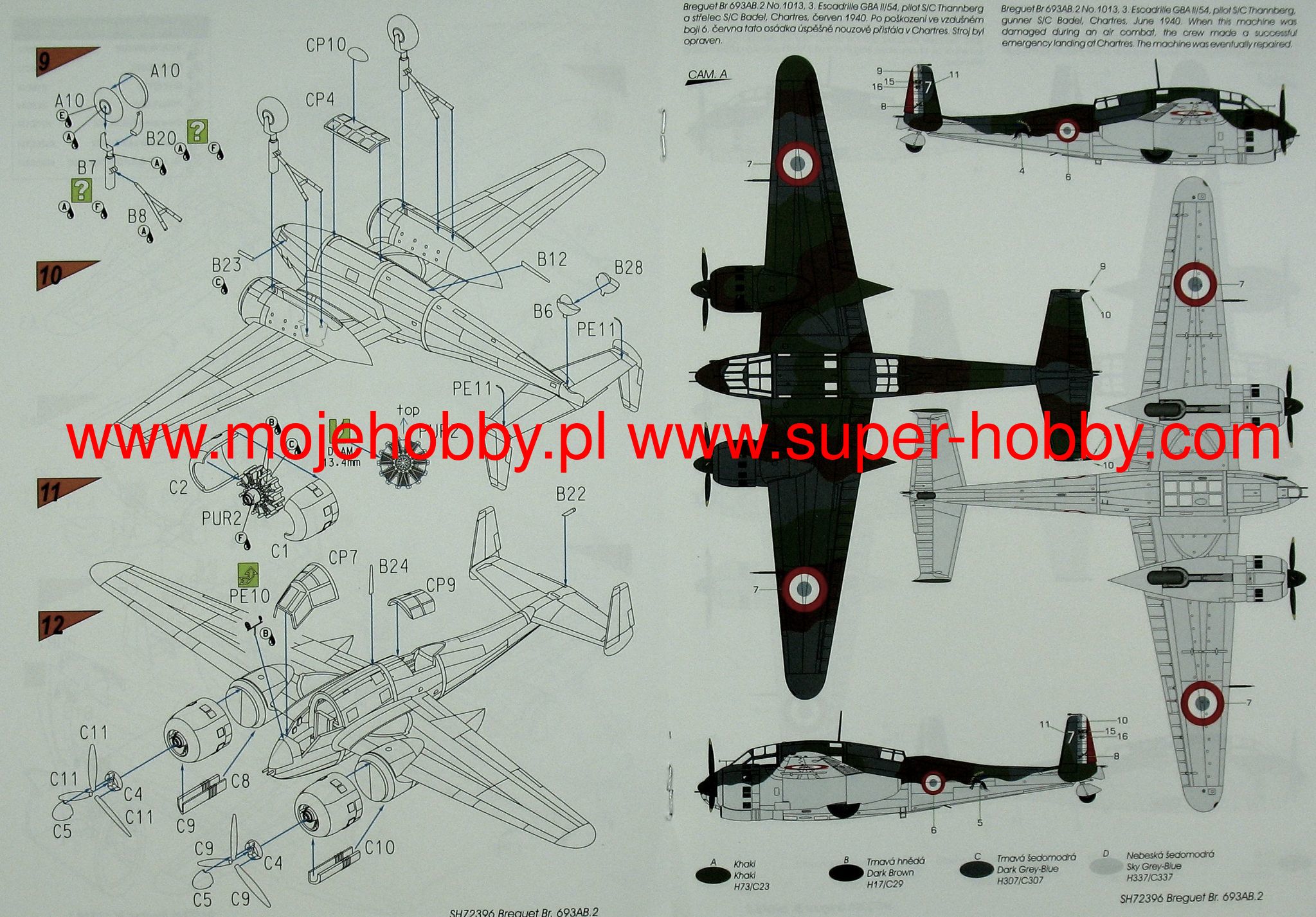 Breguet Bre.693 французский тяжелый истребитель, штурмовик и разведывательный самолет времен Второй мировой войны с цельнометаллической конструкцией среднего крыла. Bre.693 принадлежит к семейству самолетов Breguet, обозначенных как Bre.690. Полет прототипа состоялся в октябре 1939 года, и в том же году он был запущен в серийное производство. Bre.693 был попыткой реализовать концепцию универсального самолета, служащего в первую очередь тяжелым, универсальным истребителем и разведчиком. Серийные машины оснащались двумя 14-цилиндровыми звездообразными двигателями Gnome-Rhône 14M 6/7 мощностью 700 л.с. каждый. До начала войны было выпущено 250 машин Bre.693. Во время Французской кампании Bre.693 воевал в составе пяти французских авиационных эскадрилий: GBA I/51, GBA II/51, GBA I/54, GBA II/54 и GBA II/35. Небольшое количество уцелевших машин служило до 1942 года в армии государства Виши. Технические данные: Максимальная скорость: 490 км/ч, скорость набора высоты: 9,25 м/с, максимальная высота полета: 8500 м, максимальная дальность полета: 1350 км, вооружение: стационарное - 1 20-мм пушка Hispano-Suiza HS.404 и 4 винтовочных пулемета MAC 1934 г. калибр 7,5 мм, подвесной - до 460 кг бомб