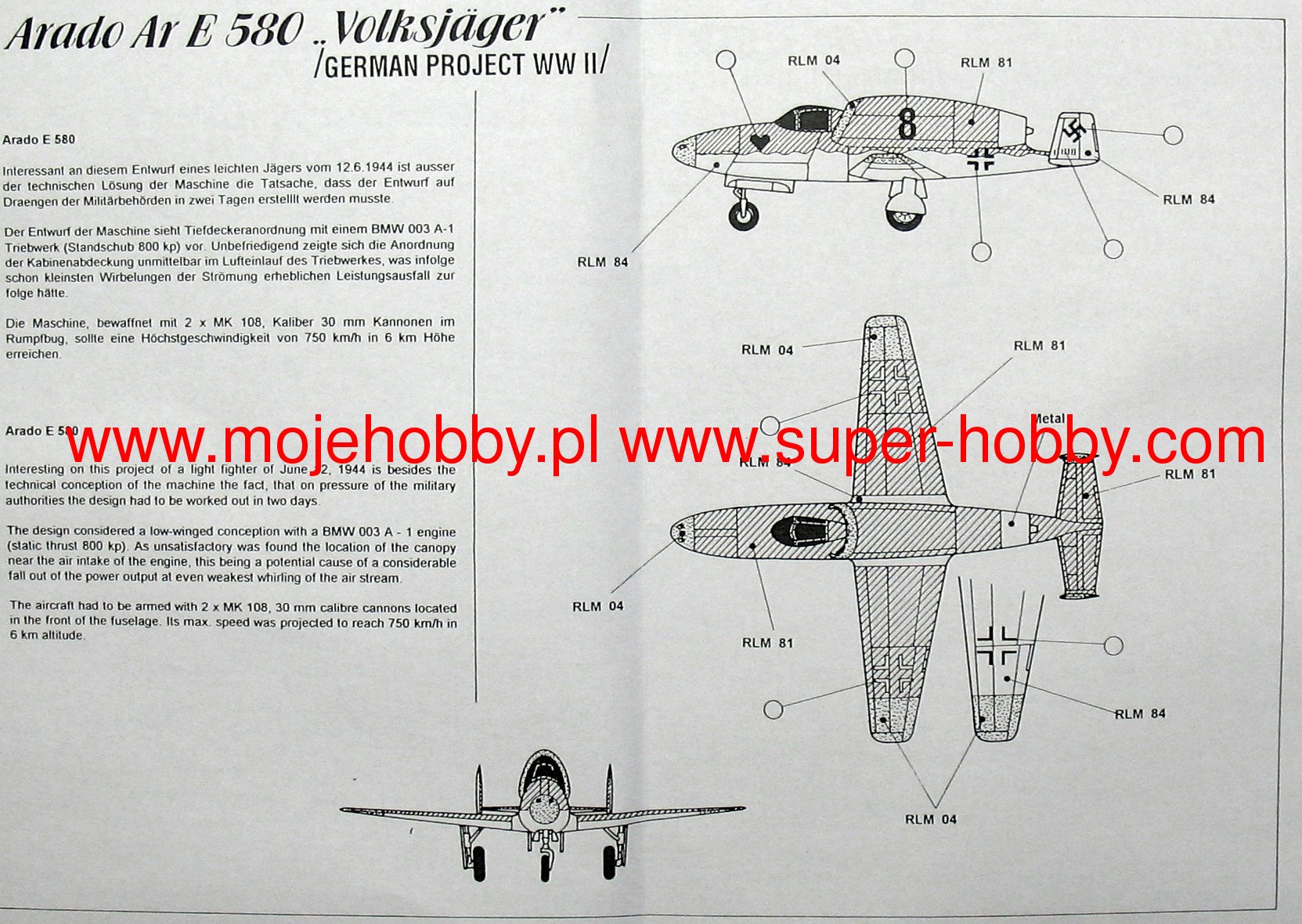 Arado Ar E.580 был проектом немецкого истребителя времен Второй мировой войны. Предполагалось, что тяга будет обеспечиваться одним реактивным двигателем BMW 003 A-1, а бортовое вооружение будет состоять из двух 20-мм или 30-мм пушек. Максимальная скорость должна была достигать примерно 750 км/ч. Проект Arado Ar E.580 создавался в конце 1944 года в рамках т.н. народный борец (нем. Volksjäger). Новая машина должна была быть в первую очередь перехватчиком, способным уничтожать стратегические бомбардировщики союзников, совершавшие бомбардировочные налеты на Германию. Предполагалось, что он будет иметь максимально возможную максимальную скорость и скороподъемность, будет вооружен пушками, но при этом будет изготовлен из самых дешевых материалов например, крылья должны были быть деревянными. Определенным недостатком конструкции было размещение двигателя в верхней части фюзеляжа, очень близко к кабине, что могло привести к его гибели в случае эвакуации пилота. Arado Ar E.580 никогда не поступал в серийное производство и не проходил испытания.