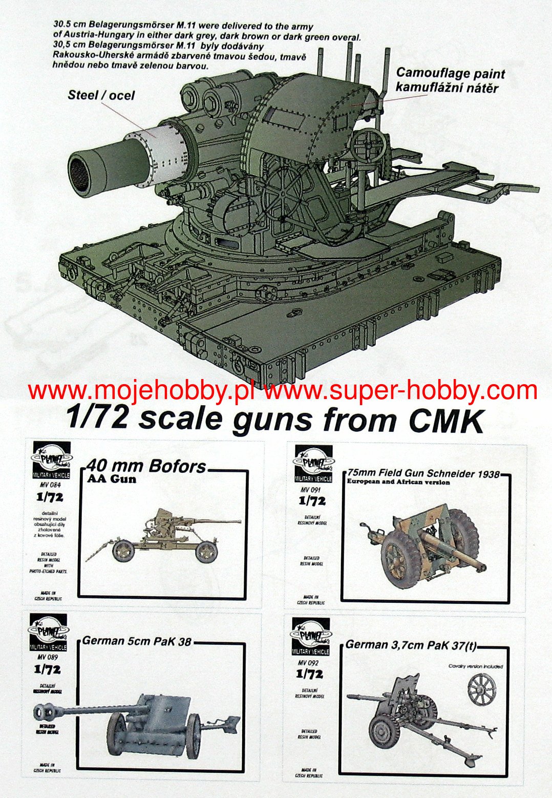 The Skoda 305mm Model 1911 is a heavy howitzer (or heavy siege mortar) designed and built at the Skoda World War I plant. The first prototypes of the guns were built around 1910, and series production continued in the years 1911-1917 / 1918, ending with the production of about 80 examples of this weapon. The maximum range was 11,300 m, and the initial velocity of the projectile - 340 m / s. The rate of fire was up to 10 shots per hour. The Skoda 305 mm fired shells weighing 287 kg and 384 kg. The Skoda 305 mm was designed to destroy concrete and armored fortifications. During World War I, it was also used to fight enemy artillery and attack earth fortifications. Unlike many heavy guns of that time, the Skoda 305 mm had considerable mobility - for a howitzer of this caliber - thanks to a properly developed tow truck and a special tractor dedicated to this weapon. Moreover, setting the gun into position took usually from 2 to 3 hours, which was a good result by the standards of World War I. Three variants of the Skoda 305 mm were created. The first one, marked as M11, was the first production version. The second - M11 / 16 - had a more solid construction, as a result of which the weight of the weapon increased. The last version of the M16 or M17 was characterized by an elongated barrel and a different location of the retractors. The weapon was intensively used by the Austro-Hungarian army during World War I, especially on the Italian and Carpathian fronts. They were also used in 1914 against the fortresses of Liege and Namur on the Western Front. In World War II, they were used, among others, by the German army to fire on the Maginot Line in 1940 and during the battles near Sevastopol in 1941-1942.The Skoda 305mm Model 1911 is a heavy howitzer (or heavy siege mortar) designed and built at the Skoda World War I plant. The first prototypes of the guns were built around 1910, and series production continued in the years 1911-1917 / 1918, ending with the production of about 80 examples of this weapon. The maximum range was 11,300 m, and the initial velocity of the projectile - 340 m / s. The rate of fire was up to 10 shots per hour. The Skoda 305 mm fired shells weighing 287 kg and 384 kg. The Skoda 305 mm was designed to destroy concrete and armored fortifications. During World War I, it was also used to fight enemy artillery and attack earth fortifications. Unlike many heavy guns of that time, the Skoda 305 mm had considerable mobility - for a howitzer of this caliber - thanks to a properly developed tow truck and a special tractor dedicated to this weapon. Moreover, setting the gun into position took usually from 2 to 3 hours, which was a good result by the standards of World War I. Three variants of the Skoda 305 mm were created. The first one, marked as M11, was the first production version. The second - M11 / 16 - had a more solid construction, as a result of which the weight of the weapon increased. The last version of the M16 or M17 was characterized by an elongated barrel and a different location of the retractors. The weapon was intensively used by the Austro-Hungarian army during World War I, especially on the Italian and Carpathian fronts. They were also used in 1914 against the fortresses of Liege and Namur on the Western Front. In World War II, they were used, among others, by the German army to fire on the Maginot Line in 1940 and during the battles near Sevastopol in 1941-1942.