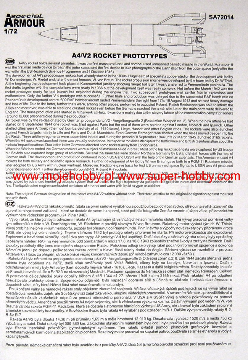 The V2 (German: Vergeltungswaffe-2 - retaliation weapon No. 2) was a German ballistic missile from the Second World War. The V2 was a single-stage liquid-fuel missile with a range of 320-380 kilometers, capable of carrying a warhead weighing up to 975 kilograms. The first designs and theoretical assumptions of a vertical launch missile powered by a rocket engine were developed in Germany in the mid-1930s. The German armed forces became interested in the idea relatively quickly and began to spend large sums of money on research. From 1937, the work was focused on the island of Usedom, in the vicinity of Peenemunde, in a specially created and built from scratch research center, which was managed by Werner von Braun. The first successful V2 launches took place in 1942, and the construction of the missile assembly line began in 1943, but work on the new weapon was very effectively delayed by an RAF raid conducted in August 1943 on research centers in Peenemunde. The British were guided by the information obtained by the Home Army intelligence service. Despite this, the first V2s entered the line in early 1944, but their first combat use did not take place until September 1944. Their main goal was to attack British cities, especially London. It is estimated that between September 1944 and March 1945, approximately 5,500 missiles were fired, of which approximately 70% hit the target. Undoubtedly, the V2 was a revolutionary weapon that had a significant and clear impact on the development of ballistic missiles during the Cold War, but it also had many disadvantages: it was actually impossible to steer a V2 missile in flight, its accuracy was tragically poor (it could hit several kilometers from the intended target!), it was also difficult to determine the exact range of the rocket. Its influence on the course of World War II was marginal.