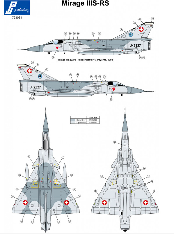 721031 MIRAGE III S/ RS SWISS DECALS - INJECTED pj production 1/72