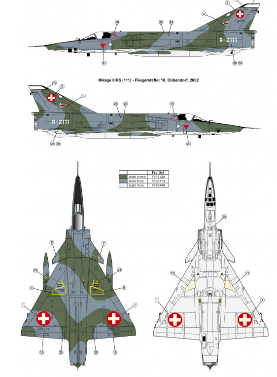 721031 MIRAGE III S/ RS SWISS DECALS - INJECTED
