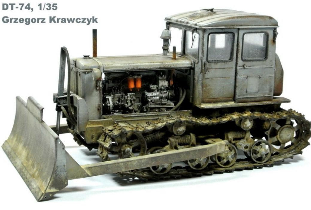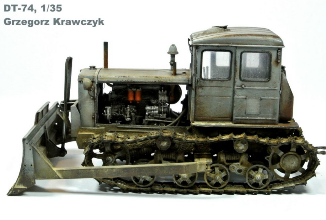Советский трактор ДТ-74 с бульдозерным отвалом