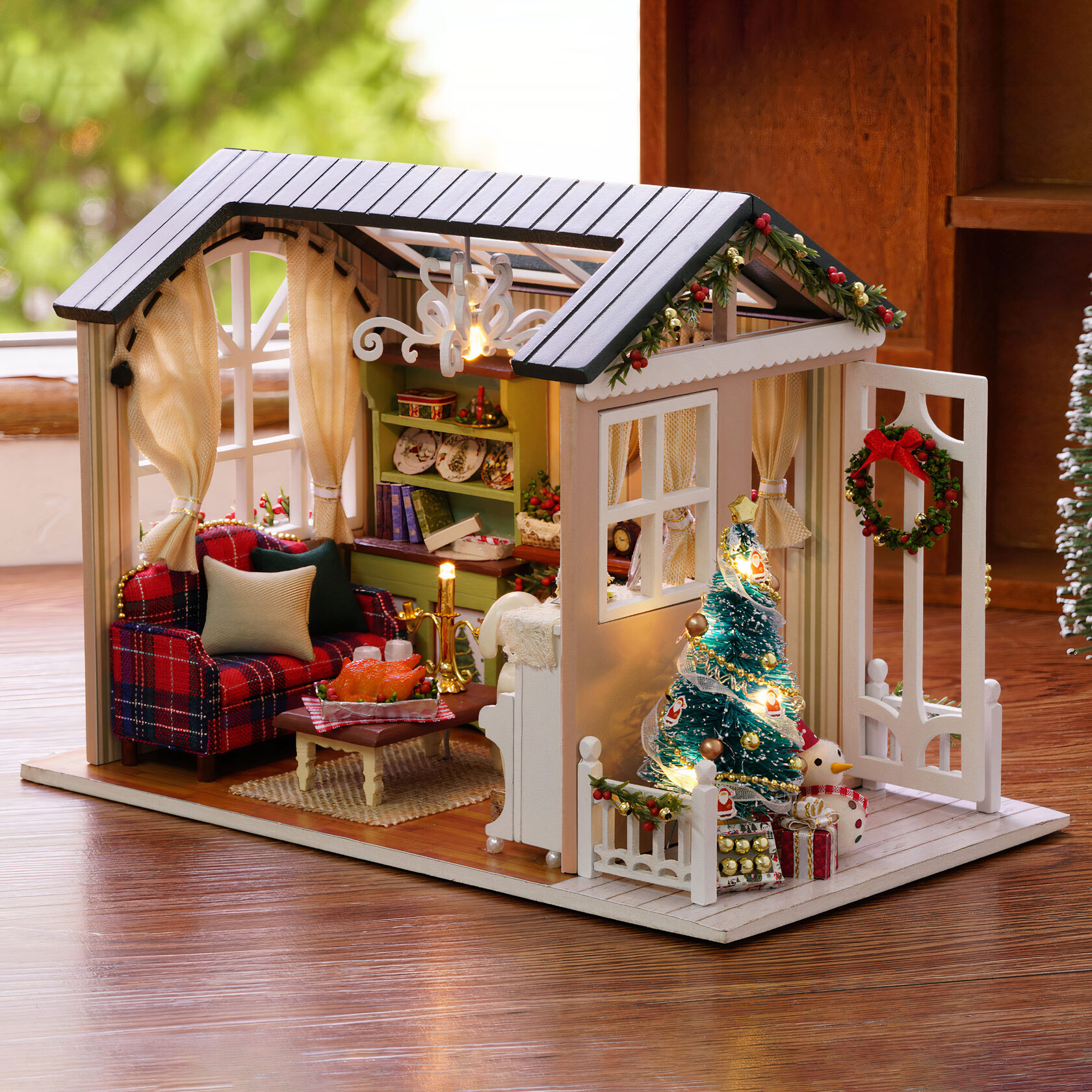 Сборная модель домика, оформленного по западным рождественским канонам. Интерьер дома в Рождественский период неразрывно связан с венками и корзинками, с Пуансеттией как символом Рожественской Вифлеемской звезды, и, конечно же, с елью, украшение которой - особенная традиция многих семей. В комплекте: Инструкция на русском языке; Светодиодная подсветка; Защитный прозрачный купол (защита от пыли); Набор инструментов; Два вида клея: универсальный, ПВА. Размер модели в собранном виде 21*15. 5*12. 5 см