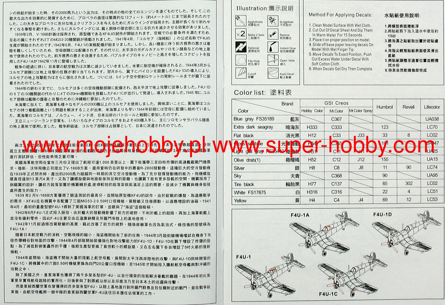 The revolutionary design of the F4U Corsair was created in 1938 in response to the request of the US Navy to design a high-speed fighter stationed on board aircraft carriers. Chance Vought took on the challenge, with the goal of fitting the most powerful of the available engines (i.e. the Pratt-Whitney Double Wasp engine) into the smallest possible airframe. The key was to place the clunky landing gear in the inverted, crooked wings that became the hallmark of the aircraft. The flight of the prototype took place on May 29, 1940, and the US Navy received its first serial Corsair on July 31, 1942. However, tests carried out by the US Navy on aircraft carriers revealed some flaws in the design, which meant that the first production series of the aircraft went to squadrons of the Marine Corps and operated from land bases. The first unit received by the F-4 was the VMF-124 at Gudalcanal. It quickly turned out that the new machine definitely surpasses all enemy machines and, in several respects, also the F-6 Hellcat. At the same time, however, it was very difficult to pilot and required great attention when landing. Interestingly, only up to 20% of Corsair missions took off from the decks of aircraft carriers, and throughout almost the entire war they remained primarily a machine of the Marine Corps. After the end of World War II, the F-4 Corsair remained in the line and took part in the Korean War (1950-1953). Technical data (version F4U-4): Maximum speed: 731 km / h, speed of climb: 19.7 m / s, maximum ceiling 12649 m, maximum range: 1115 km, armament: fixed - 6 M2 machine guns, caliber 12, 7mm and 4 20mm Browning cannons, sling - up to 1800 kg of bombs.
