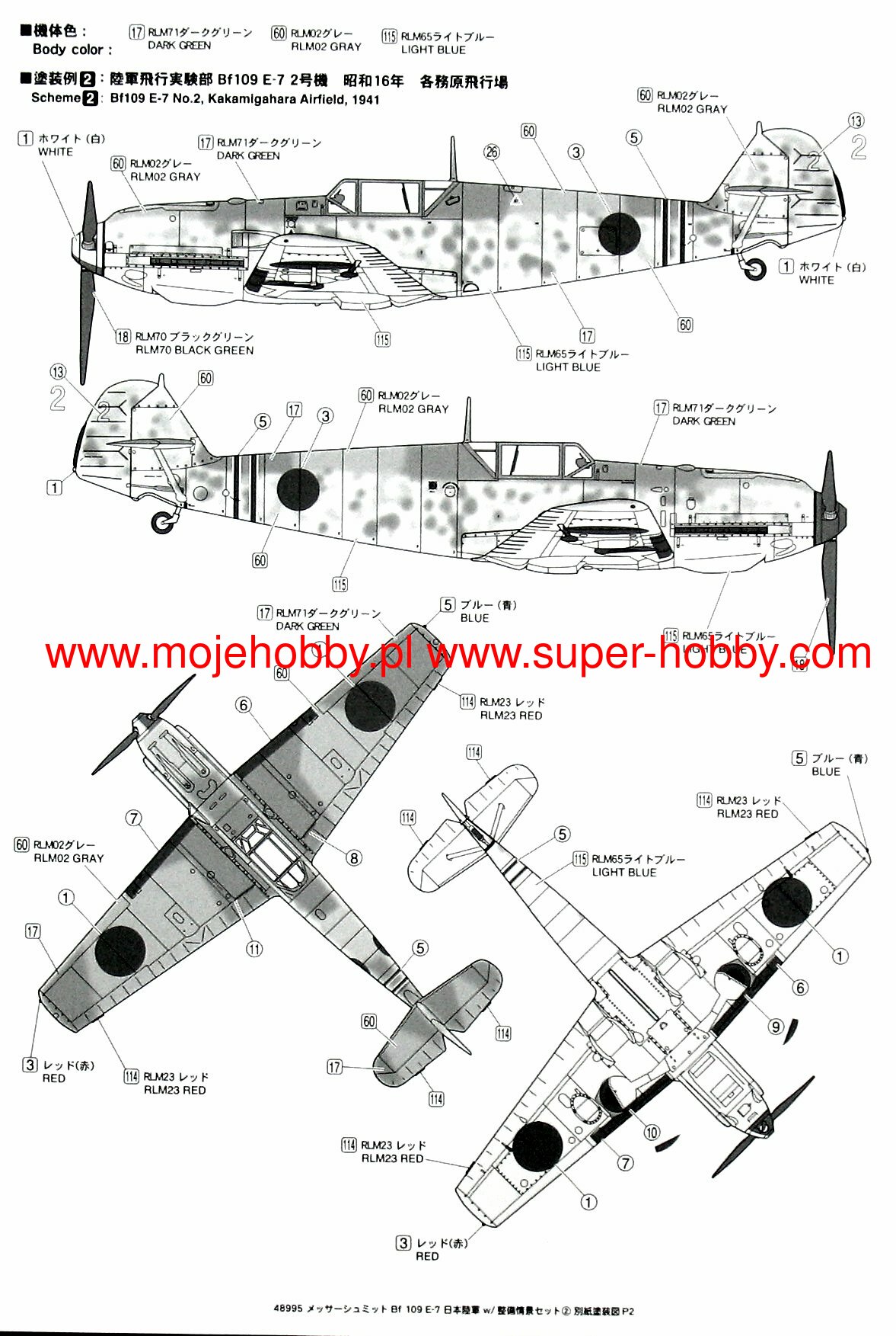 The Messerschmitt Bf-109 is a German metal-structure single-engine fighter in a low wing configuration with a classic tail. It turned out to be the basic and most produced Luftwaffe fighter during World War II. The flight of the prototype took place on May 29, 1935, and serial production continued in the years 1936-1945. In total, it is estimated that a total of about 35,000 Messerschmitt Bf-109 fighters of all varieties were produced, many of which ended up in the Czech and Israeli air forces after the war. The roots of the Bf-109 go back to the competition announced in 1933 by the Luftwaffe for a new fighter plane. In competition with the He-112, the Bf-109 project initially lost, but thanks to Willie Messerschmitt's intrigues, the project could continue and eventually he was the winner of the competition, becoming the Luftwaffe's primary fighter. Several main variants of the Bf-109 were developed in the course of production. The first pre-production series was the Bf-109B (Berta) with different versions of the Junkers Jumo 210 (A or Da) engine. They were tested in Spain from 1937 during the Civil War. The next version is the Bf-109C (Caesar). They had a different engine than the B version, and extensive armament consisting of two 20mm and 2 HP 7.92mm cannons. These machines also fought in the skies of Spain. The third version is the Bf-109D (Dora) with the Junkers Jumo 210 Da or Daimler-Benz DB 600 engine. It fought in the September campaign, but at the turn of 1939/1940 it was replaced by the E version. The most famous model was the Bf-109E (Emil) with a Daimler-Benz 601A or N engine. It was the first to use a three-blade, not a two-blade propeller. Bf-109E fought in the French campaign, over England, and in North Africa and on the Eastern Front. The ace who started his career on the Bf-109E was the famous Adolf Galland. The next version is the Bf-109F (Friedrich), which, according to the German pilots, was the most aerodynamically perfect. It sowed the changed shape of the fuselage, wings, cabin fairings, but no new engine was used. It was put into service at the turn of 1940/1941. As part of the development of the design, further Bf-109 specifications were developed, of which the G (Gustav) version was produced in the largest number of copies. The most important change increasing the machine's performance was the installation of a new 12-cylinder Daimler-Benz DB605A engine with 1475HP. The armament of the Bf-109G was a pair of 13mm machine guns located in the fuselage in front of the cockpit fairing, and the MG151 20mm or heavier MK108 30mm cannon. The last mass-produced version was the Bf-109K (Kurfirst), which production started in October 1944. A Daimler-Benz DB 605DB or DC unit was used as the engine. The Bf-109K was the fastest version produced during World War II, reaching up to 730 km / h. Apart from that, two versions were created - H and Z, but they were rather experimental versions and their mass production did not start. Subsequent improvements in propulsion and armament made the Messerschmitt Bf-109 one of the most dangerous fighters of World War II, and at the same time showed the great potential of the slightly angular airframe created by Willi Messerschmitt. Technical data (version Bf-109 G-6): length: 8.95 m, wingspan: 9.92 m, height: 2.6 m, maximum speed: 640 km / h, rate of climb: 17 m / s, maximum range: 850 km, maximum ceiling 12000m, armament: fixed - 2 MG131 13mm machine guns and 1 MG151 20mm cannon, suspended - 250 kg bombs, or 2 Wfr missile launchers. Gr. 21.