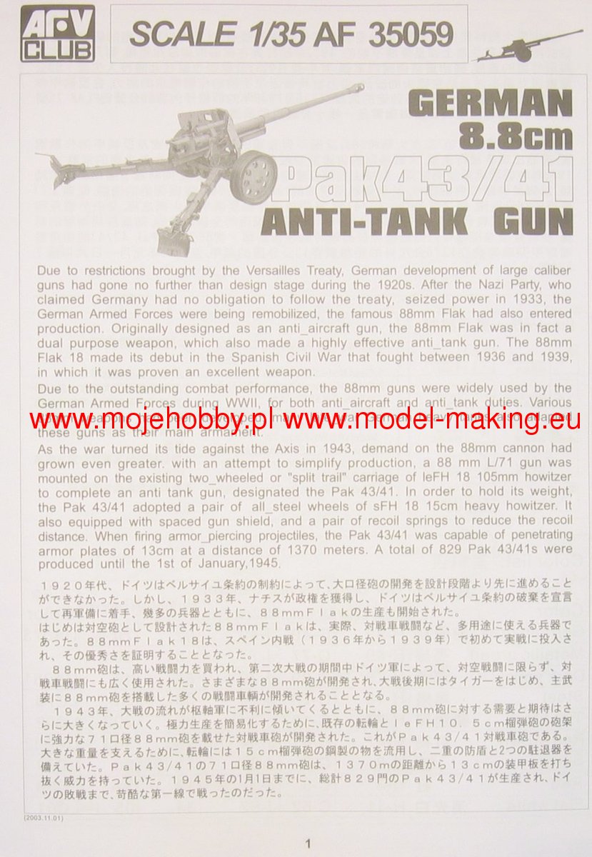 AFV CLUB НЕМЕЦКАЯ ПУШКА 8.8 CM ПАК 43/41