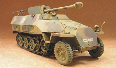 Sd.Kfz 251 was a German, medium, half-track armored transport from the Second World War. The first prototypes of the vehicle were made in 1935, and serial production continued in 1939-1945, ending with the production of about 14,500 units. The Sd.Kfz 251 was powered by a six-cylinder engine Maybach HL 42 TURKM with 100 hp . Sd.Kfz 251 was developed as a new, basic half-tracked transporter of the German armed forces. Its design was based on the Sd.Kfz.11 heavy tractor, with several elements changed in the adapted chassis: a new fuel tank was added, the location of the steering wheel, and the exhaust system was redesigned. In the course of serial production, four basic versions of the Sd.Kfz 251 (Ausf. A, B, C and D) were created, however, in terms of details related to the production process (especially the C version) and a slightly different arrangement of elements inside the fuselage. During World War II, more than 20 variants and versions of the Sd.Kfz 251 were created. The chronological first was the Sd.Kfz 251/1, which was the basic version, armed with two MG34 or MG42 machine guns and capable of carrying up to 10 landing troops. In 1941, a version of the Sd.Kfz 251/2 was developed, armed with an 80 mm mortar. There was also a version of the Sd.Kfz 251/3, which was a communication and radio communication vehicle with various sets of radio stations and antennas. In 1942, the Sd.Kfz 251/9 Stummel variant was developed, armed with a 75mm StuK 37 short-barrel gun. More interesting versions were the Sd.Kfz 251/16 with two flamethrowers or the Sd.Kfz 251/20 UHU equipped with an infrared radiation emitter and intended for targeting at night. Cars Sd.Kfz 251 of all versions served primarily in armored divisions and armored grenadiers on virtually all fronts of World War II: from the September campaign (1939), through the campaign in France (1940), fighting in the Balkans and North Africa (1941-1943) after fights on the Eastern (1941-1945) and Western (1944-1945) fronts.