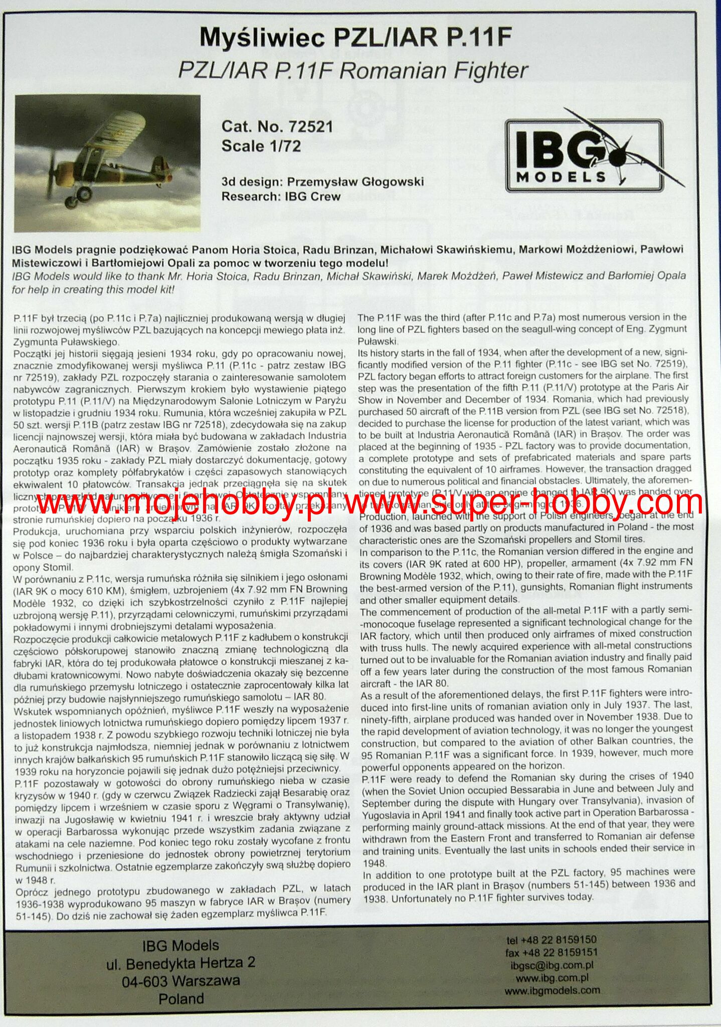 The PZL P.11a (the so-called eleven) is a Polish, single-engine fighter plane with a metal structure with Puławski wings, a classic tail and a fixed landing gear. The flight of the prototype took place in 1931, but serial production continued in 1937-1939. The first serial version is the PZL P.11a powered by the Bristol Mercury IV S2 engine with a power of 550 HP. However, it was treated as a transitional version and only 50 were ordered. The most famous version of the "eleven" - PZL P.11c - appeared in the summer. It had an improved fuselage, wings and a vertical stabilizer. It all improved the aerodynamics of the plane. The drive unit has not changed. The interest in the construction was expressed by, among others, Romania, where 95 units of the licensed PZL P.11 were manufactured at the IAR plants. At the outbreak of the war, all versions of the P.11 were much slower than their German opponents, but at the same time had greater maneuverability, high rate of climb and a less emergency engine than German planes. They had many victories over the enemy during the September campaign, mainly as part of the Pursuit Brigade. Technical data (version P.11c): length: 7.55m, wingspan: 10.72m, height: 2.85m, maximum speed: 367km / h, rate of climb: 14.5m / s, maximum ceiling: 8000m, range maximum: 550 km, armament: fixed - 2 machine guns wz.33 cal.7.92 mm.