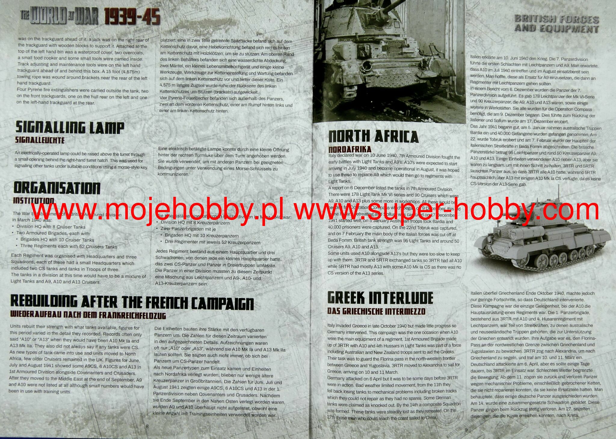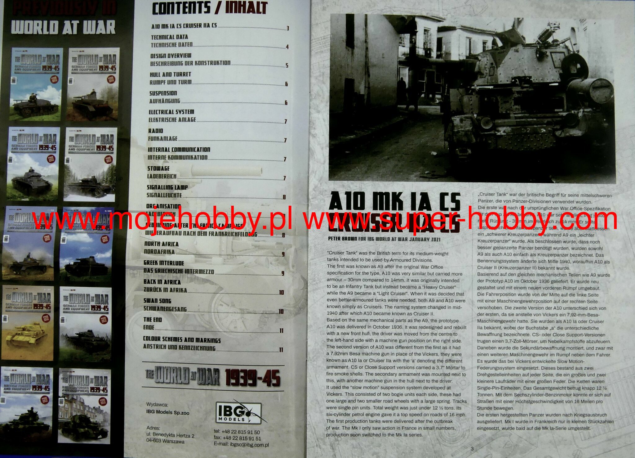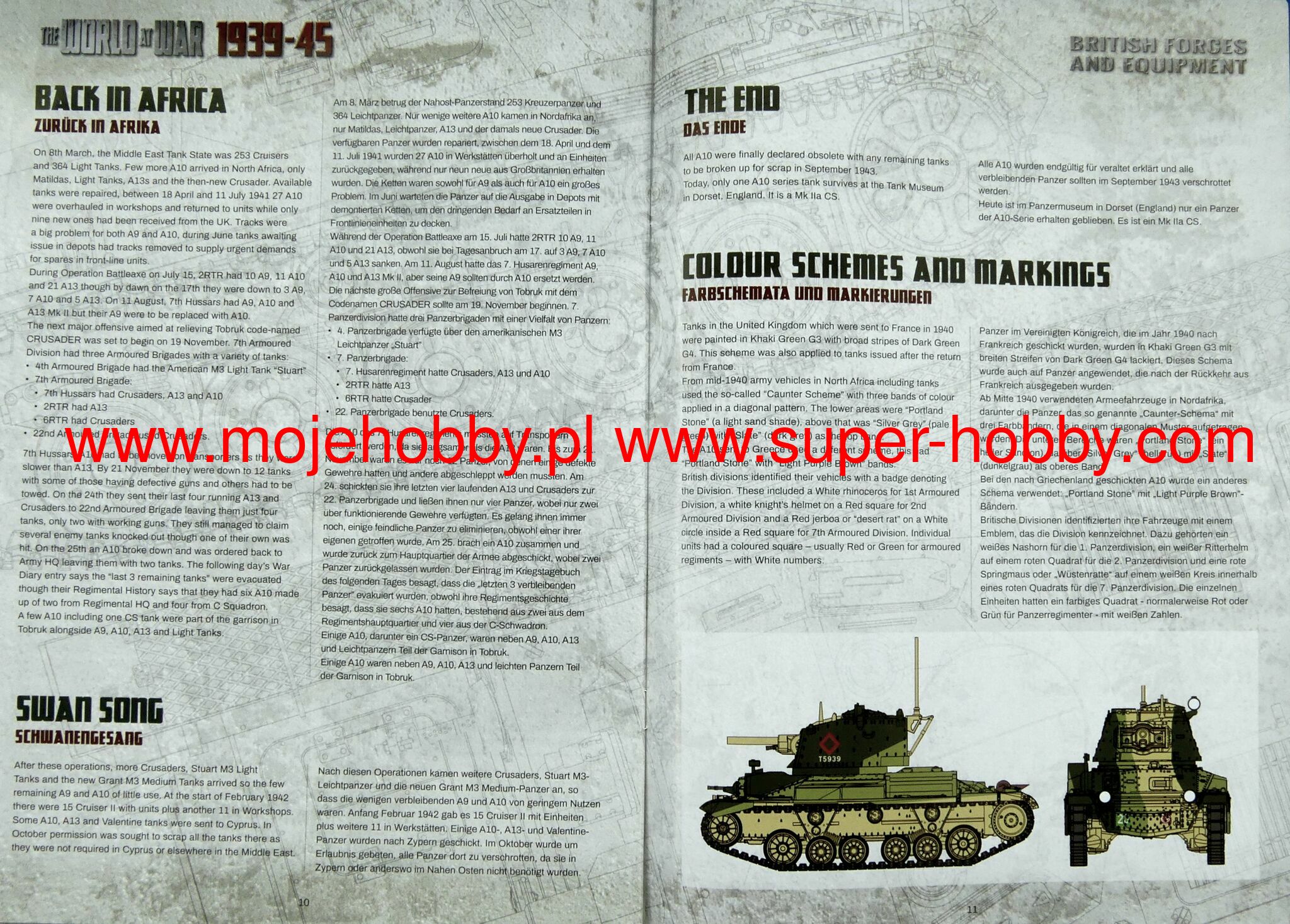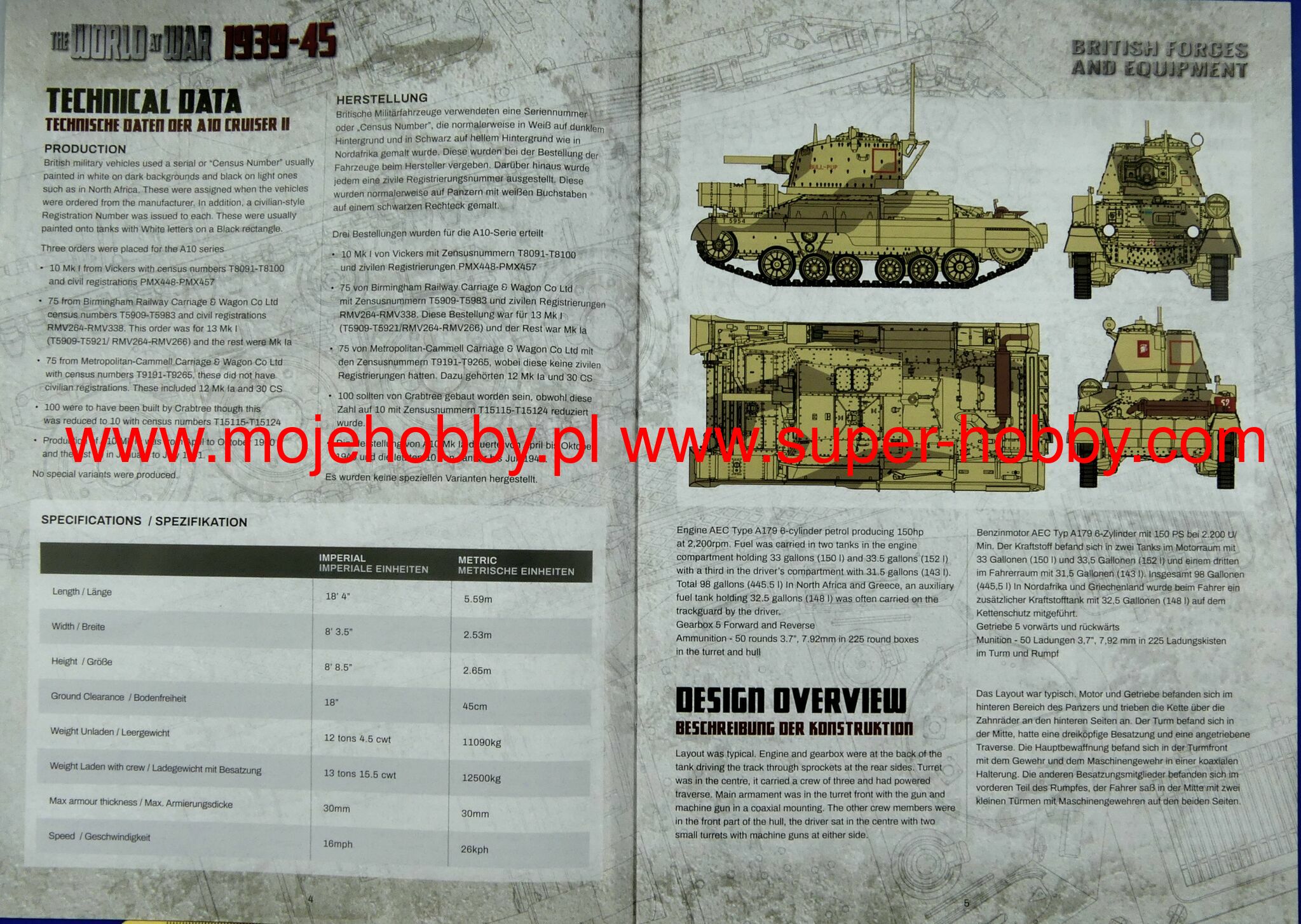 Cruiser Tank A10 (also known as: The Cruiser Tank Mark II) was a British high speed / pursuit tank from the interwar period and World War II. The first prototypes of the vehicle were made in 1936, and serial production continued in the years 1938-1940, ending with the production of about 200 examples. The wagon length was about 5.6 m, with a width of about 2.5 m and a height of about 2.65 meters. The tank was powered by an engine AEC A179 with 150 hp . The basic armament of the vehicle consisted of a single 40 mm 2-pounder cannon and 2 Vickers and BESA 7.7 and 7.92 mm machine guns. The Cruiser Tank A10 was developed as a highly modernized version of the A9 car. Compared to its predecessor, it was distinguished mainly by the dismantling of the turrets at the front of the car, which housed machine guns, and by strengthening the armor, especially in the front part of the turret and the hull. At the same time, however, the same drive unit was retained, which with the increased weight of the car meant that its performance decreased compared to the A9 model. The Cruiser Tank A10, like its predecessor, was not a particularly successful tank, but it was characterized by high mechanical efficiency, it was reliable (also in desert conditions), and its main armament allowed it to destroy virtually any German or Italian tank at the beginning of World War II. The vehicle underwent its baptism of fire during the fighting in France in 1940, and was later used during the fighting in Greece in 1941 and during the initial period of the campaign in North Africa (1940-1943).