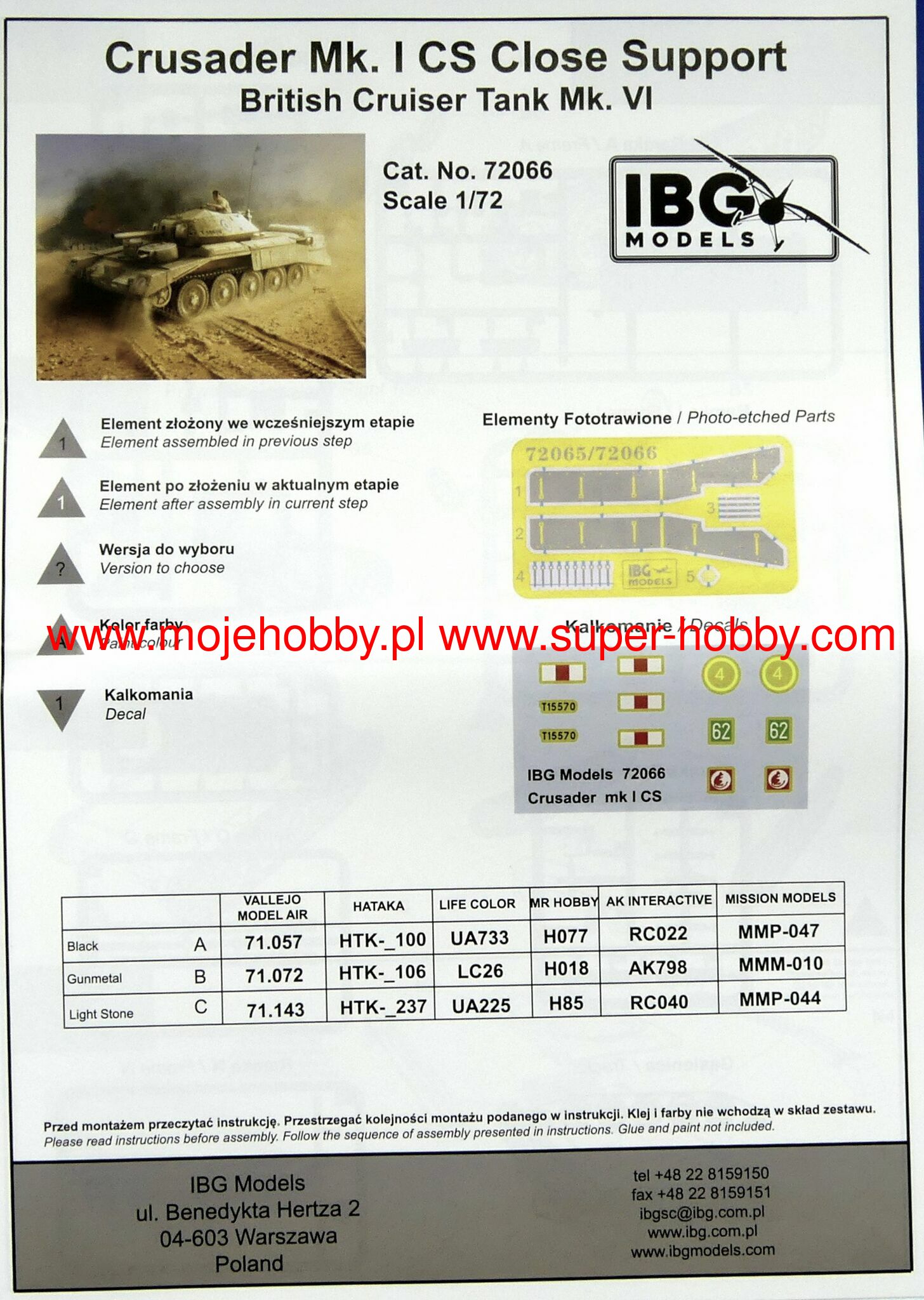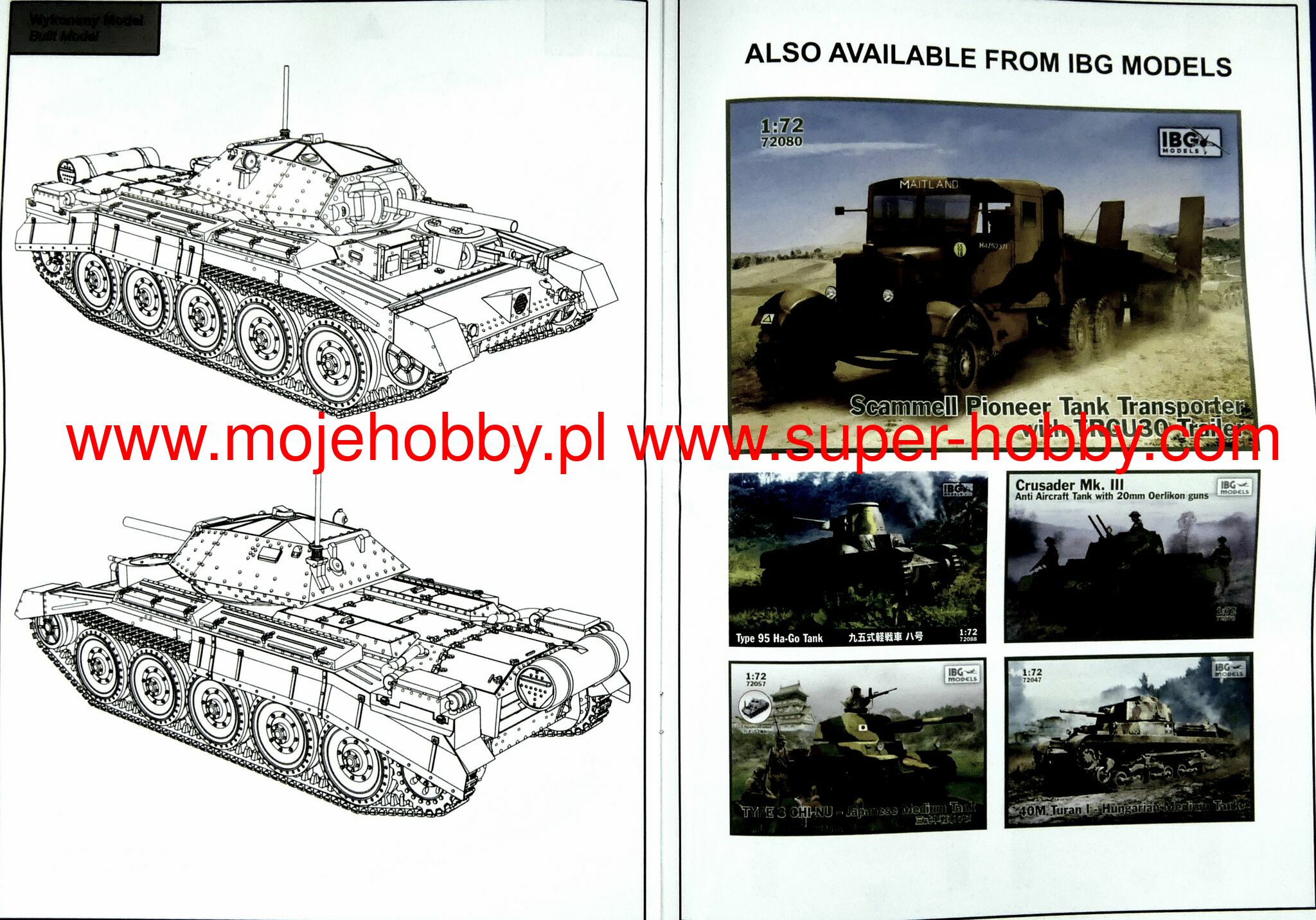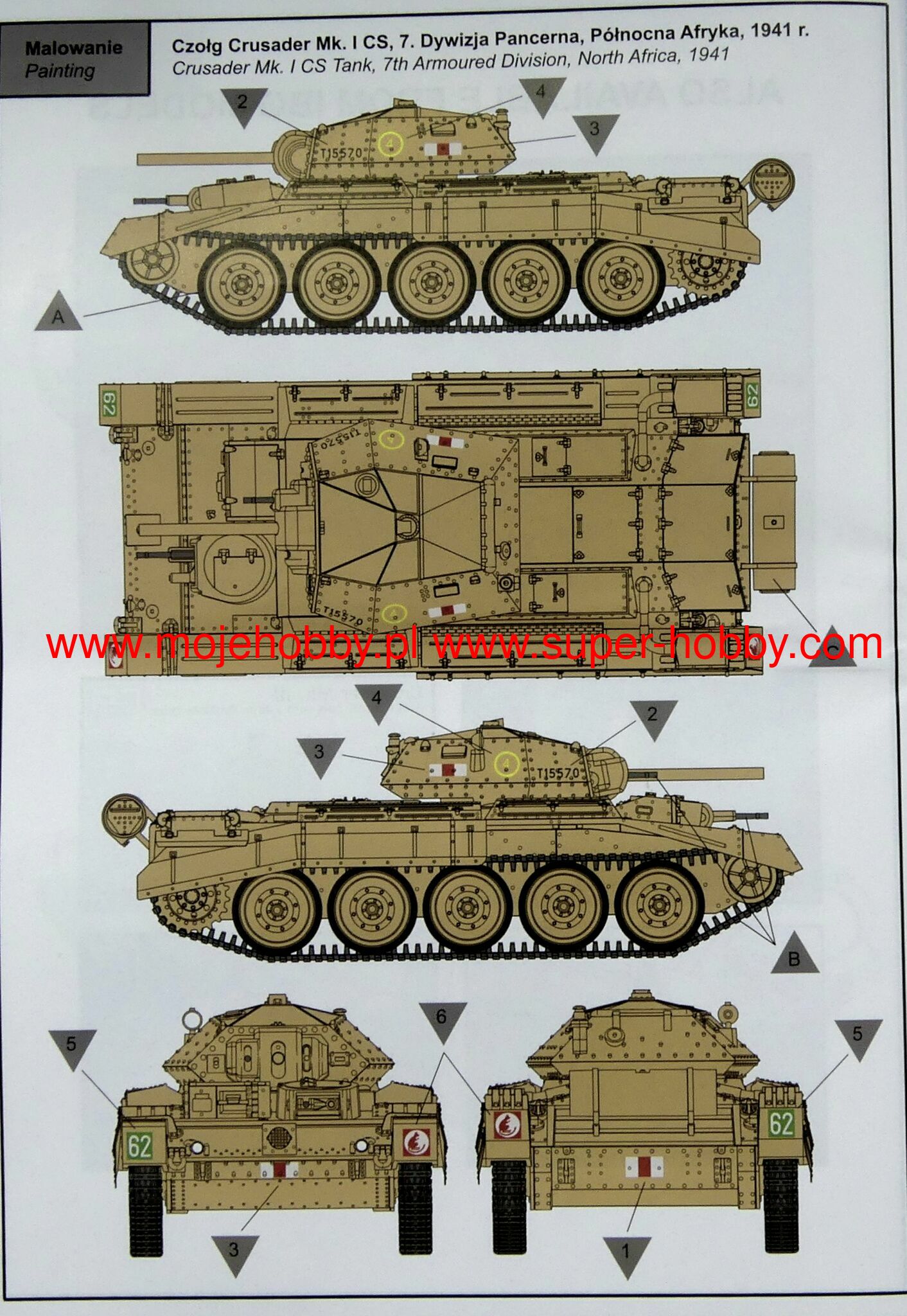 The Crusader was a British tank of the Second World War. The first prototypes were built in 1939, and serial production continued in 1940-1943. In total, about 4,900 copies of this tank were built. Crusader was powered by an engine Nuffield Liberty Mk II with 340 hp. The vehicle was armed with - depending on the version - a single 40mm QF 2-pounder cannon or a single 57mm QF 6-pounder cannon and two 7.92mm and 7.7mm machine guns. Tank Crusader was constructed as a successor to the failed Convenanter A13 car. First of all, the new tank was more carefully designed, which meant it had a much lower failure rate than its predecessor. The armor has also been improved. Despite these changes The Crusader, when it entered service, still had too weak armor, and above all, too weak weapons to fight enemy tanks. Its strengths include the aforementioned low failure rate and good mobility. Nevertheless, after the end of the North African campaign (1940-1943) in which the Crusader tanks played a major role, they were systematically and quickly withdrawn from the frontline units. Several versions of this tank were created in the course of serial production. Chronologically, the first was the Crusader I, which was the first mass-produced version of this tank. In May 1942, the Crusader III version made its debut, with a new 57mm gun and 51mm reinforced armor. After 1943, numerous specialist vehicles based on the Crusader chassis were built, such as the Crusader II Gun Traktor or the Crusader III AA Mk. I and II. Crusader tanks found themselves in the Free French, Australian and New Zealand units. They also became part of the equipment of the Polish Armed Forces in the West (PES).
