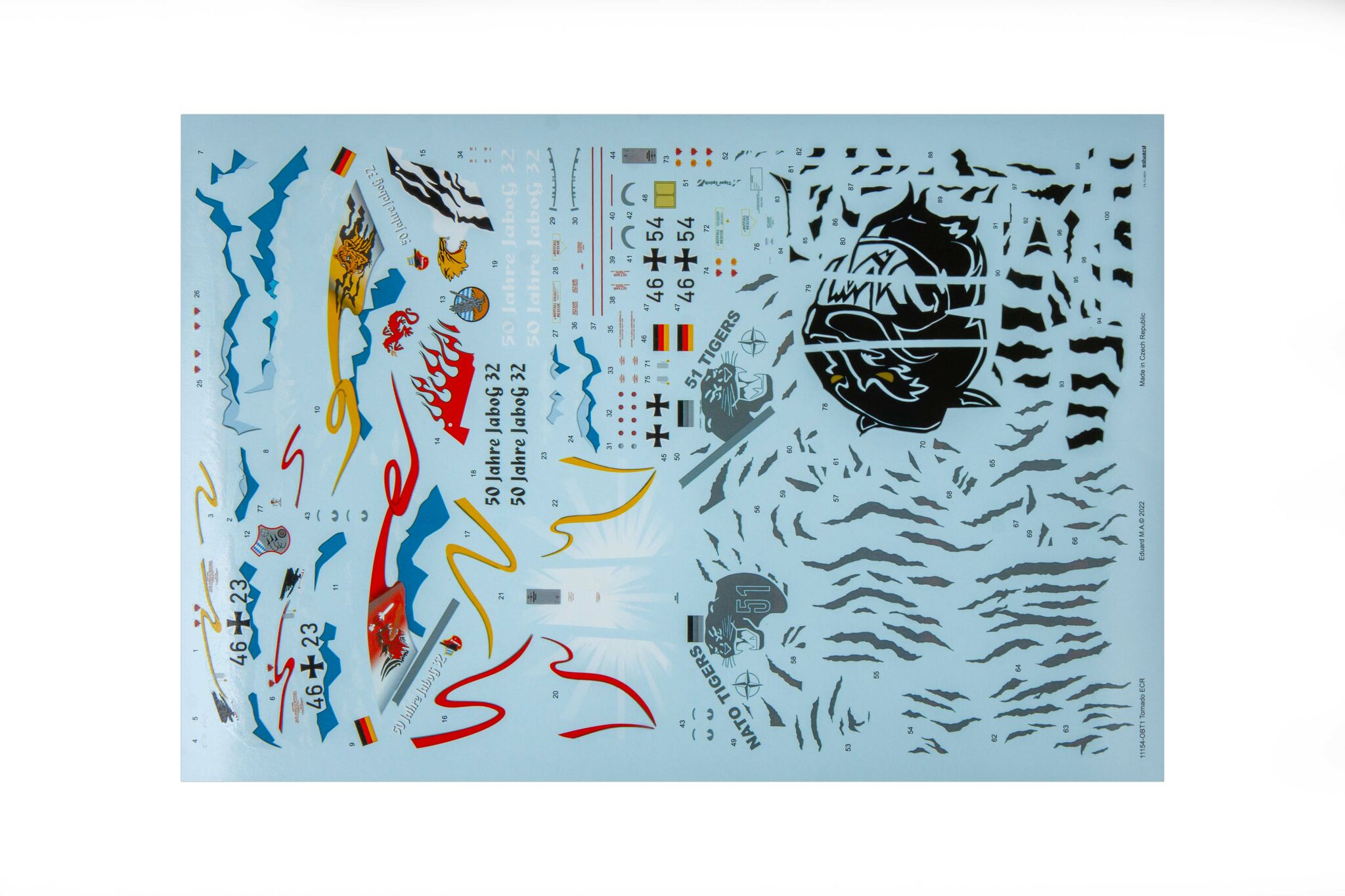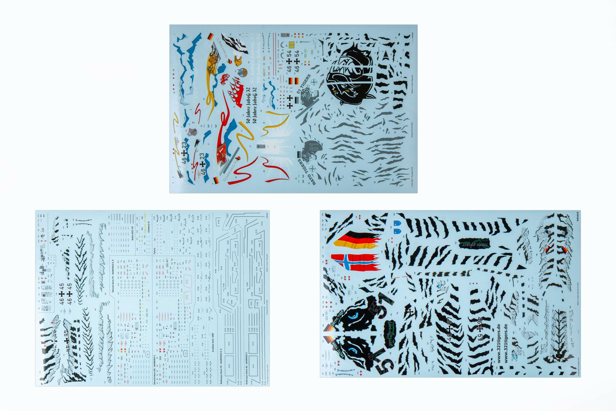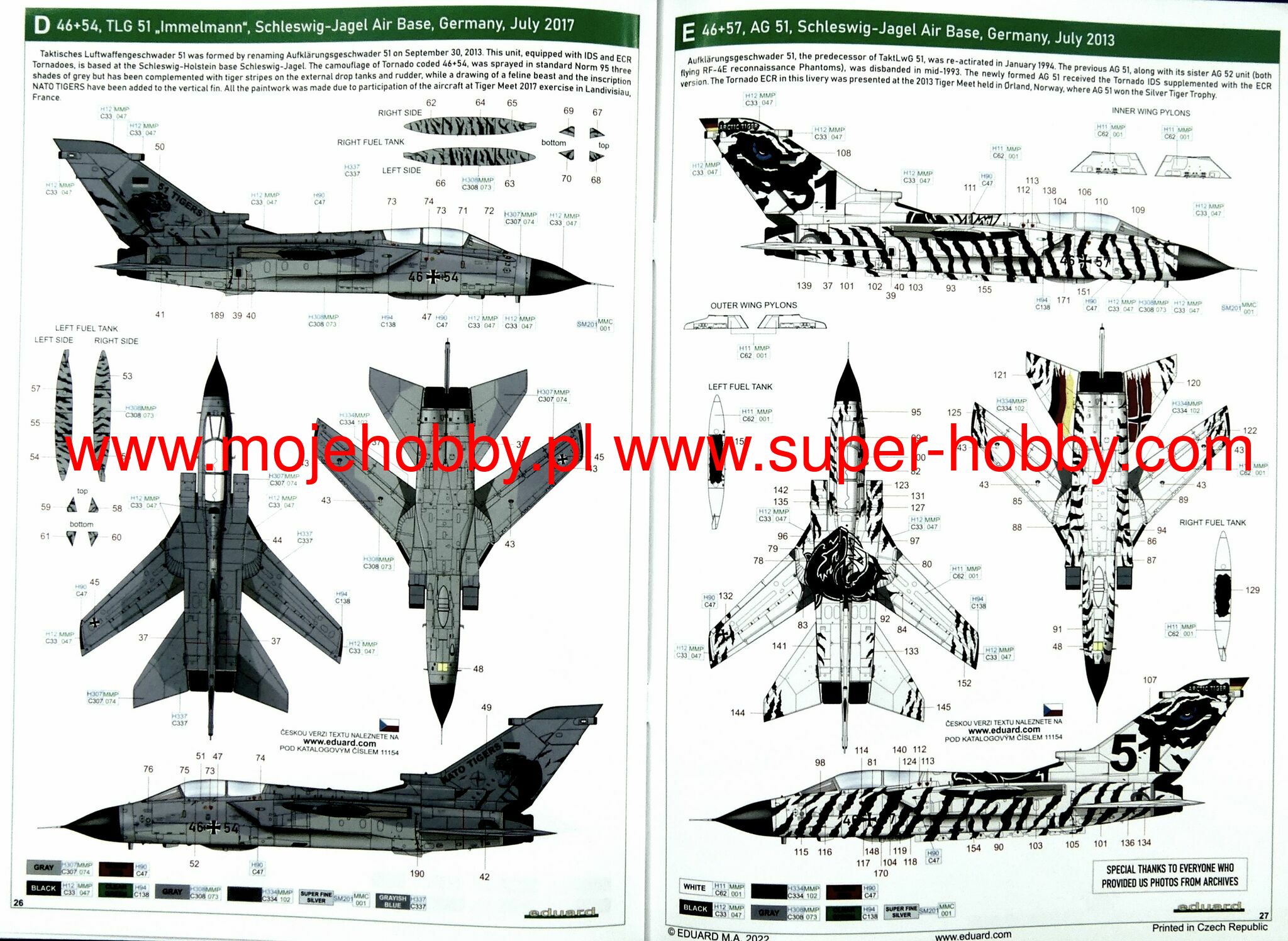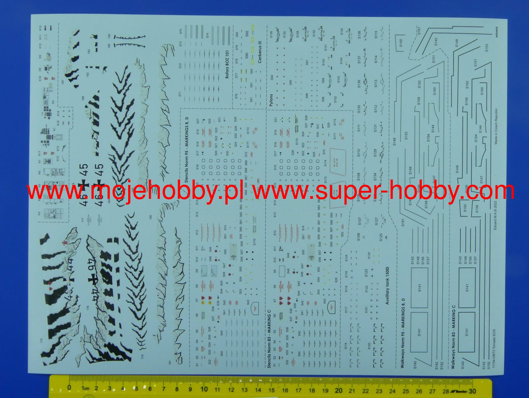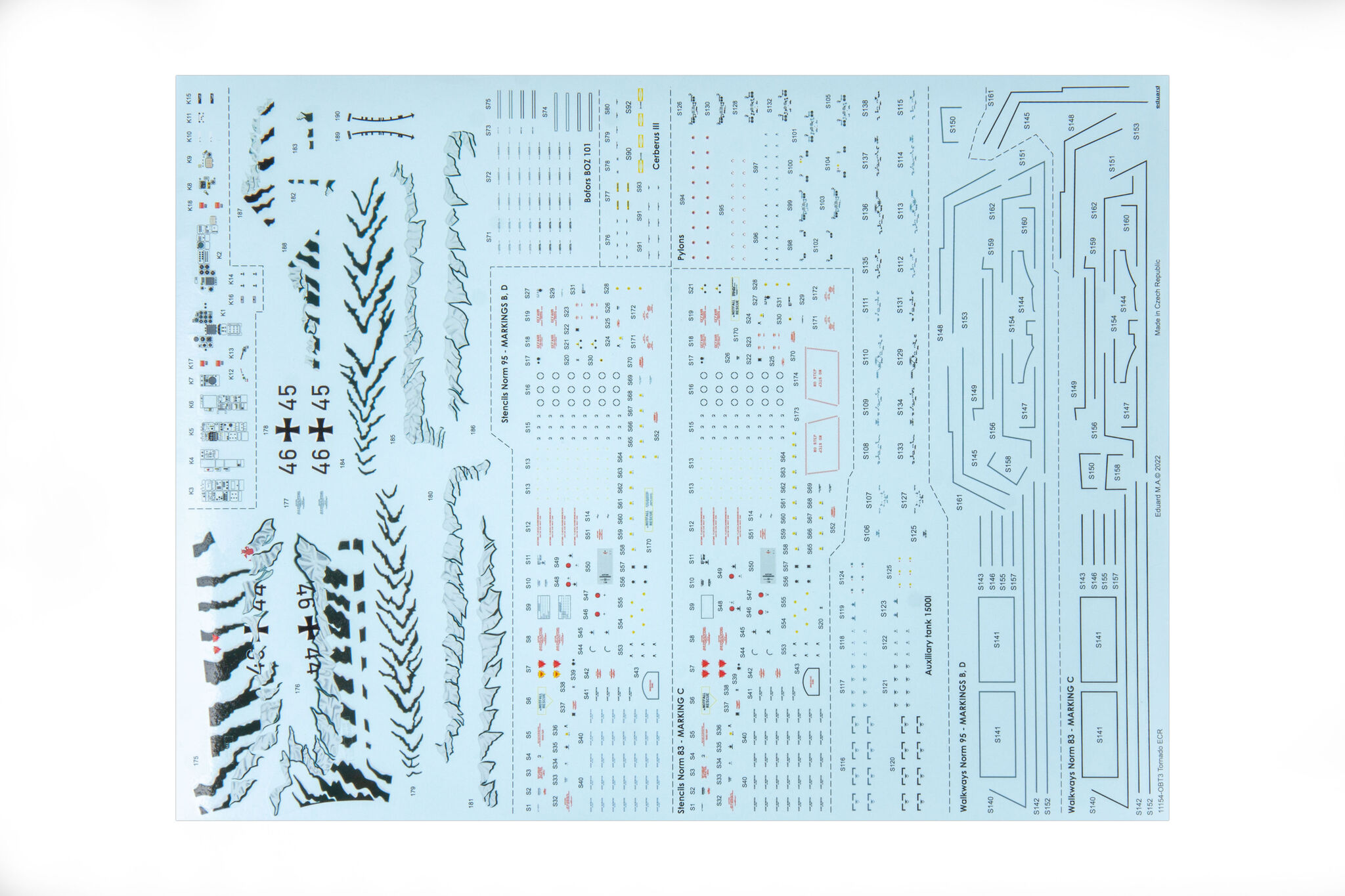 The origins of the Tornado design date back to 1968. It was then that the trinational PANAVIA consortium was established in order to implement the project known as MRCA (Multi-Role Combat Aircraft). On September 14, 1974, the flight of the first prototype took place and the construction of the first 640 ordered aircraft began, with production split in such a way that Germany and Great Britain each completed 42.5%, and Italy 15% of the order. Tornado fleets are currently the most important part of the air force of three European NATO countries. They remain in the composition of the air forces of Great Britain (Royal Air Force), Italy (Aeronautica Militare Italiana) and Germany (Luftwaffe) and in the aviation of the German Navy (Marinefliege). In addition, in 1986, a number of these aircraft were ordered by Saudi Arabia and incorporated into its armed forces (Royal Saudi Air Force). There are three main versions of the aircraft: Tornado ECR, Tornado ADV and Tornado IDS. Tornado ECR is a German / Italian reconnaissance version, it can carry Raytheon AGM - 88 HARM anti-radar missiles. In addition, they carry AIM-9L Sidewinder missiles for self-defense purposes. The Tornado ADV is a version of the interceptor, equipped with the great Marconi-Ferranti Foxhunter radar with a range of up to 190km and able to track up to 20 targets simultaneously. The Tornado IDS, on the other hand, is an assault bomber designed primarily to support land forces. It is capable of carrying a very wide range of weapons, including: a CWS flying cartridge, Paveway II guided bombs, GBU-15 guided bombs, AGM-65 Maverick air-to-ground missiles. Technical data (ADV version): length: 18.68m, wingspan (maximum): 13.91m, height: 5.95m, maximum speed: 2.27Ma, rate of climb: 77m / s, practical ceiling: 21300m, maximum range : 1850 km, armament: fixed - one IWKA-Mauser 27 mm cannon, suspended - up to 8500 kg of cargo. 3_edu11154_instruction_sheet.pdf