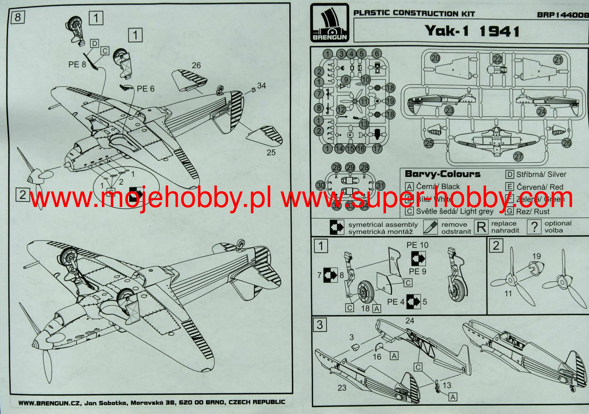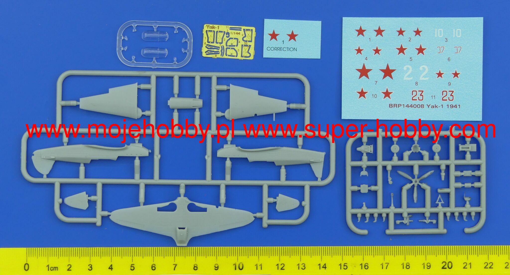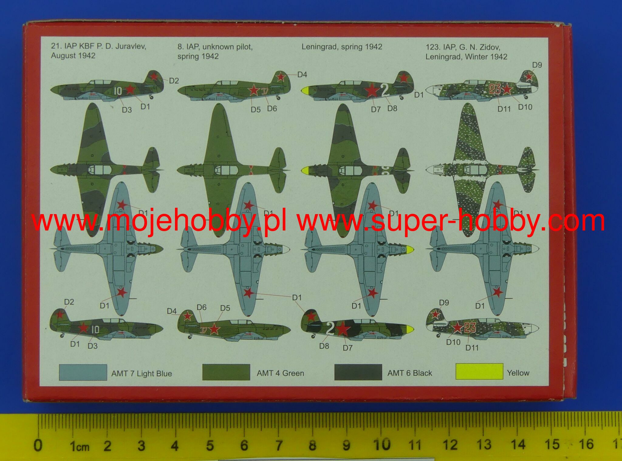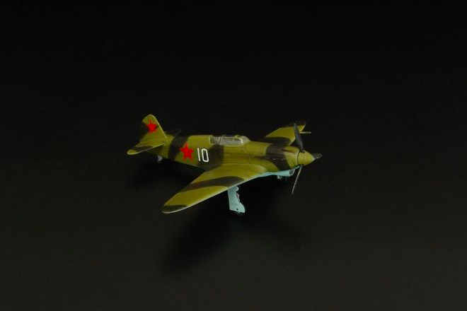 The Yakovlev Yak-1 is a Soviet, single-engine low-wing fighter with a classic tail with a mixed design from the Second World War. The Yak-1 gave rise to a whole family of fighters (Yak-3, Yak-7, Yak-9) and with them became the basic Soviet fighter in 1941-1945. Serial production continued in the 1940-1944 altos and resulted in the creation of 8,670 aircraft of this type. Yak-1 fought in almost all major battles of the Soviet-German war, especially in the counteroffensive near Moscow, the Battle of Stalingrad and the Battle of the Kursk Arch. The prototype, designated I-26, took to the air in January 1940. Serial production started in March of the same year. During the course of the war, several versions of this aircraft were created. The basic and first serial version was the Yak-1, the other was the Yak-1M - it was powered by the M-105PF engine and was characterized by a greater use of duralumin. Technical data (Yak-1b version): length: 8.5 m, wingspan: 10 m, height: 2.64 m, maximum speed: 592 km / h, rate of climb: 15.4 m / s, practical ceiling: 10050 m, maximum range: 700km, armament: fixed - 1 Berezin UBS machine gun cal.12.7mm and 1 cannon SzWAK cal.20mm.
