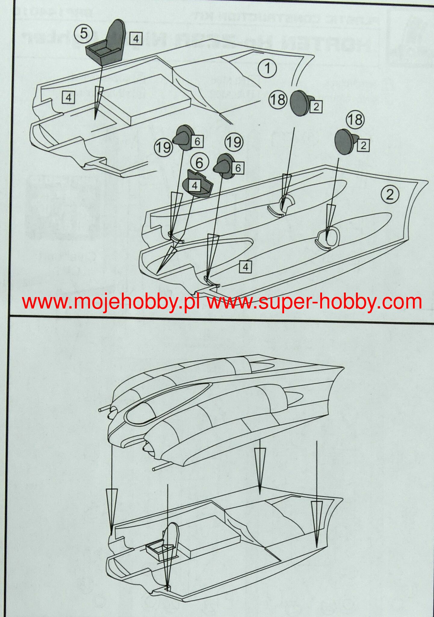 Horten Ho-229 (the designations used are also Horten Ho IX or Gotha Go-229) is a German, twin-engine, jet fighter-bomber with a flying wing arrangement from the end of World War II. In cooperation with the Luftwaffe Sonderkommando 9 experimental center, in 1942 a project of the Ho-IX fighter plane with a flying wing system powered by two BMW 003A-1 jet engines was created. The construction of the V1 and V2 prototypes started soon and were completed in 1942. Problems with the BMW engine meant that the first Ho-IX V1 prototype was flown as a glider in the summer of that year, without engines and with a fixed front landing gear. However, the second prototype, the Ho-IX V2, was redesigned and equipped with Jumo 004 B-1 engines (2x8.5 kN). The flight tests with these engines began in January 1945. The plane reached the speed of about 800 km / h in the first flight, but after 2 hours of testing, the fire of one of the engines caused the prototype to completely crash during the landing attempt. Before that, however, the task of preparing the production was entrusted to the Gothaer Waggonfabrik plant, where the construction of prototypes under the designation Go-229 V3 to V7 began, as well as preparation for production of the Go-229 A-0 trial series. The first prototype made at Goth's plant (Go-229 V3), equipped with Jumo 004C (2x10kN) engines, was ready for testing, and work on the remaining prototypes (some of them in the two-seat night fighter versions) was seriously advanced when the plants were seized by American troops. Technical data: length: 7.47m, wingspan: 16.76m, height: 2.81m, maximum speed: 977km / h, rate of climb: 22m / s, maximum ceiling 16000m, armament: fixed-4 cannons MK108 cal. 30mm Suspended - up to 1000 kg of bombs.