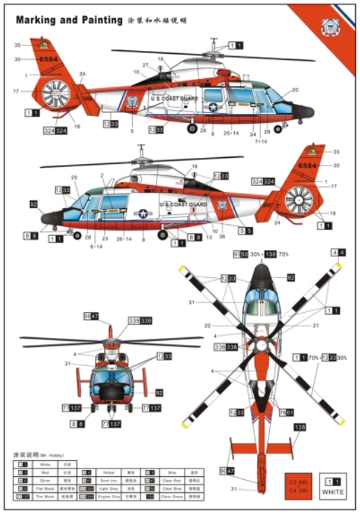 Eurocopter HH-65 Dolphin (formerly: Aerospatiale HH-65 Dolphin) is a modern American French-made search and rescue helicopter. The flight of the prototype took place in 1980, and the machine entered service in 1985. About 100 helicopters of this type were built under production. The drive was originally provided by two engines Lycoming LTS-101-750B-2, and currently Turbomeca Arriel 2C2-CG. The length of the helicopter is 13.5 meters with a main rotor diameter of 11.9 meters. The maximum take-off weight is up to 4,300 kilograms. The Eurocopter HH-65 Dolphin was developed for the US Coast Guard to replace the Sikorsky HH-52A Sea Guard in service. The machine is a development of the AS365 Dauphin helicopter. Compared to its predecessor, it differs mainly in the use of different engines, different avionics and slightly changed aerodynamic properties. Several versions of the helicopter were developed in the course of production, including: HH-65A (basic version), HH-65B (version with modernized equipment for night flights and navigation equipment) or HH-65C (version with new engines, improved transmission and enriched avionics).