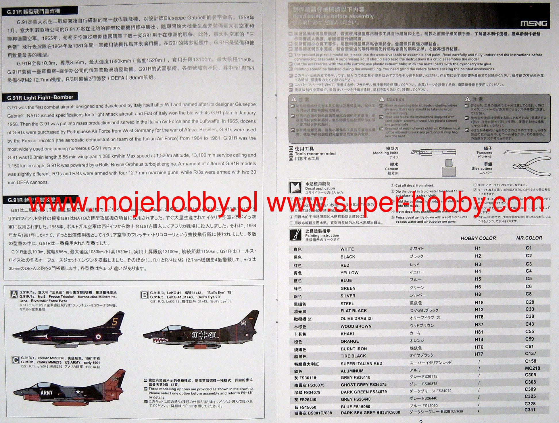 The FIAT G.91 is an Italian fighter-attack aircraft with an all-metal structure, low wing design, and oblique wings. The history of the aircraft goes back to the announcement by NATO in 1953 of a competition for a new light fighter attack known as the LWSF. As part of this competition, the FIAT concern has just created the G.91 plane, the prototype of which had its flight in August 1956. Two years later, the machines entered service. The plane turned out to be a great construction success and served in Italian, German and Portuguese aviation until the beginning of the 90s! In total, 770 machines of this type were built. The main power unit of most versions was the Bristol Siddeley Orpheus 803 engine, but in the G.91Y version it was replaced by two General Electric J85 engines. Two main versions were created: the G.91R-fighter-attack aircraft and the G.91T-training version. Technical data (version G.91R): Maximum speed: 1075 km / h, speed of climb: 30 m / s, maximum ceiling 13100 m, maximum range: 1150 km, armament: fixed - 4 M2 machine guns, caliber 12.7 mm and 2 30mm DEFA cannons, suspended - up to 1814 kg of cargo.