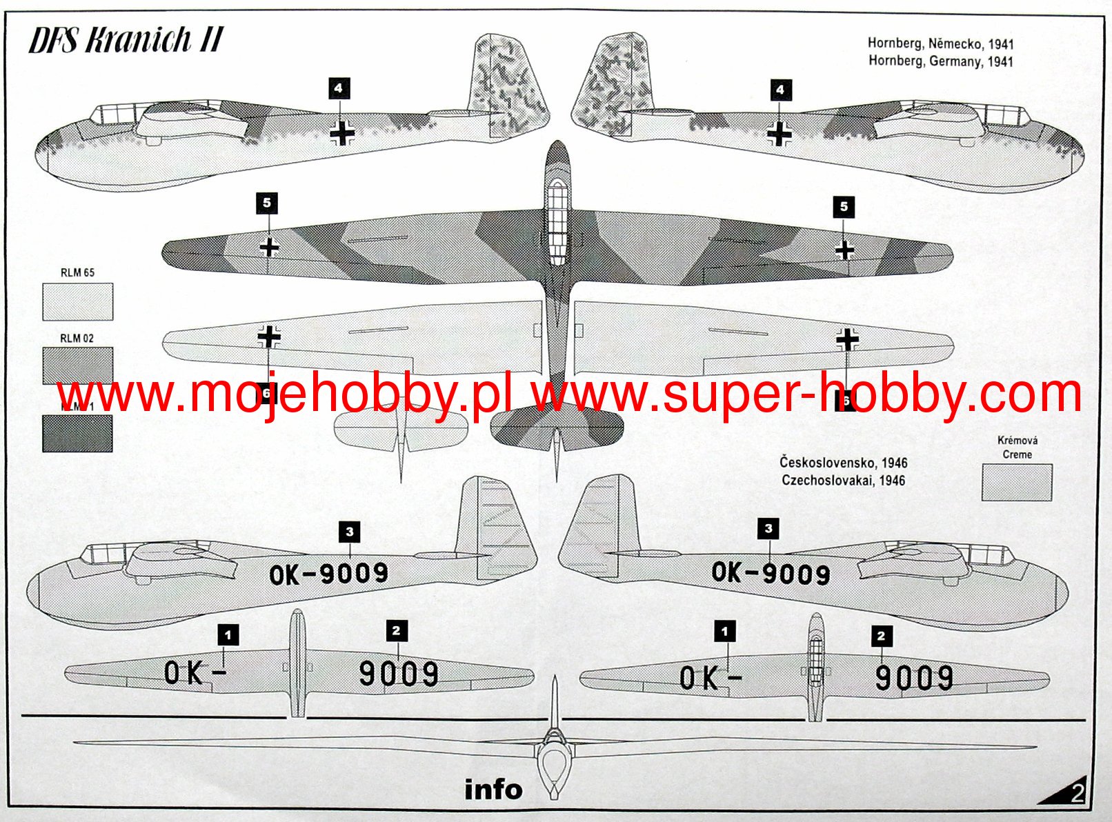 The DFS Kranich is a German two-seater sports and training glider with a spine and wooden structure. The prototype flight took place in 1935. Subsequent serial production led to the creation of approx. 1700 aircraft of this type. DFS Kranich was developed by Eng. Hans Jacobs at the Deutsche Forschungsanstalt fur Segelflug (DSF for short) as primarily a training and training glider. It was an extension of the DFS Rhonsperber design. It turned out to be an extremely successful glider, with a durable structure and very good flight and pilot properties. It quickly became the most popular glider in its class in Germany before the outbreak of World War II. In the course of production, two main versions of this glider were created: Kranich I and Kranich II. After 1945, a modernized version of this aircraft, called IS-C Żuraw, was created in Poland.