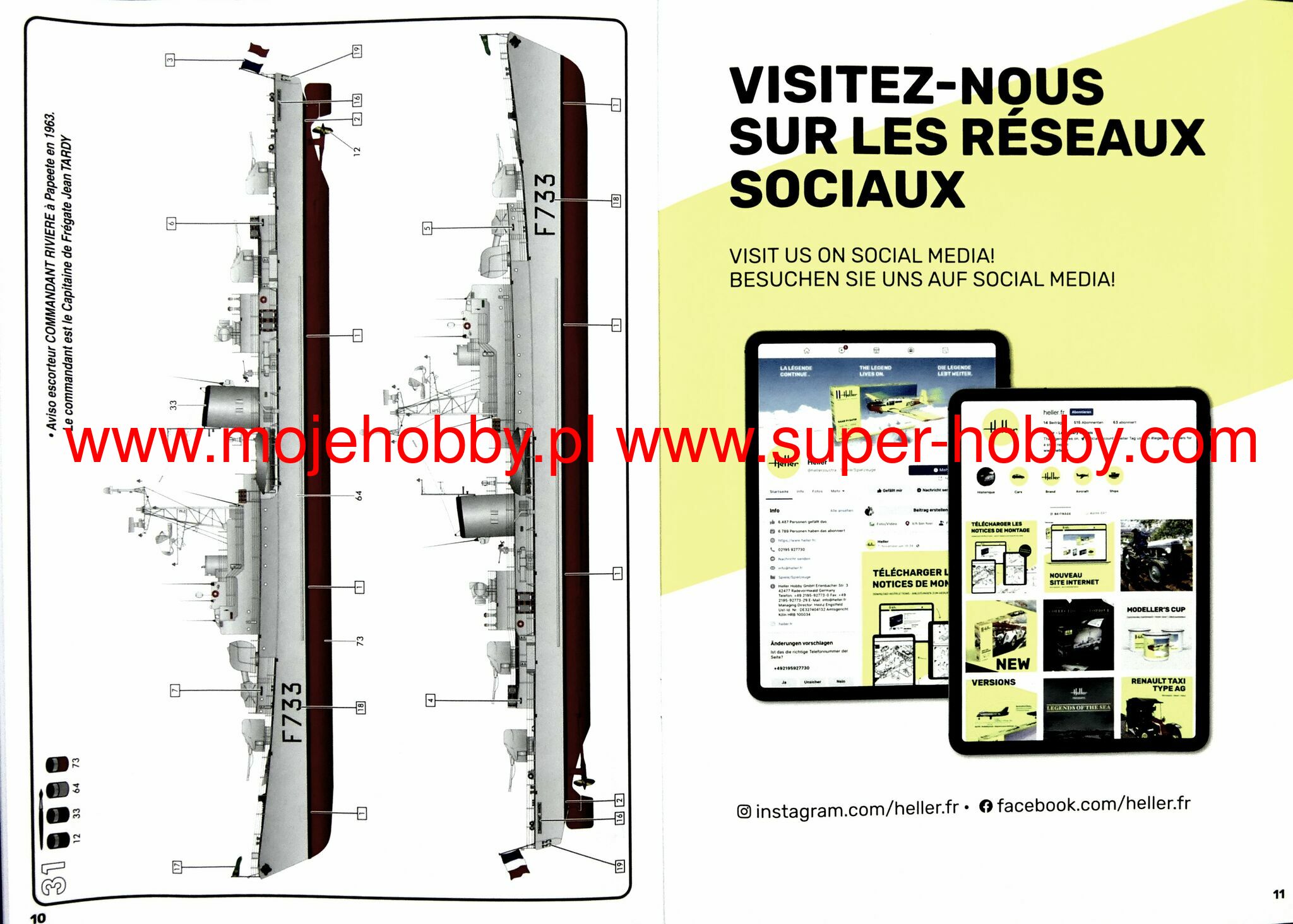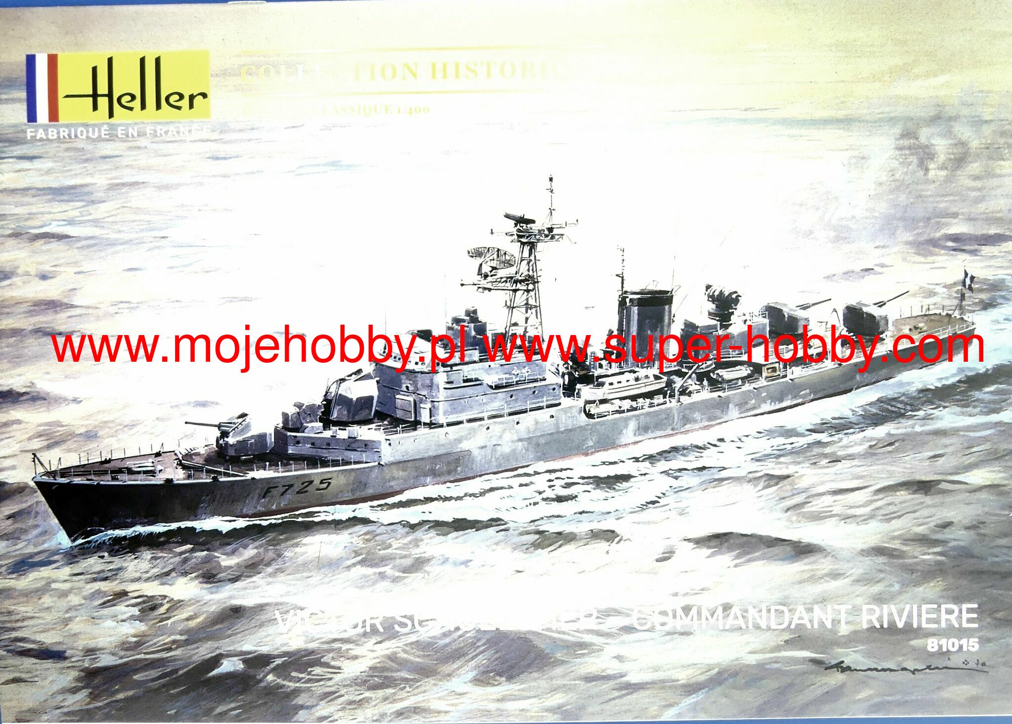 Commandant Riviere (F733) is a French frigate (fr. sloop-escort) the keel was laid in April 1957, was launched in October 1958 and entered service with the Marine Nationale in 1962. The total length of the ship at the time of launching was 103 m, width 11.5 m, with a full displacement of about 2,200 tons. The maximum speed was up to 25 knots. At the beginning of the service, the unit was armed with: 3 100 mm guns, 2 30 mm anti-aircraft guns or 2 triple 550 mm torpedo tubes. Commandant Riviere (F733) was the first of nine frigates to belong to the class of the same name, Commandant Riviere. Units of this type were built as ships intended for peacetime patrol tasks and for escort tasks (especially convoy cover) in wartime. Compared to the previous frigates of a similar role - the Le Normand type - they were clearly larger, had stronger artillery weapons and a significantly increased swimming range. The Commandant Riviere (F733) frigate was built at the Arsenal de Lorient shipyard in Lorient, Brittany. In the course of service, it was modernized, which resulted in the removal of a single 100 mm gun and the installation of 4 MM38 Exocet rocket launchers. In 1984-1985 the unit was reclassified to conduct research with the use of sonars - especially towed ones. At that time, its armament was changed. Commandant Riviere (F733) was decommissioned in 1992 and scrapped in 2015.