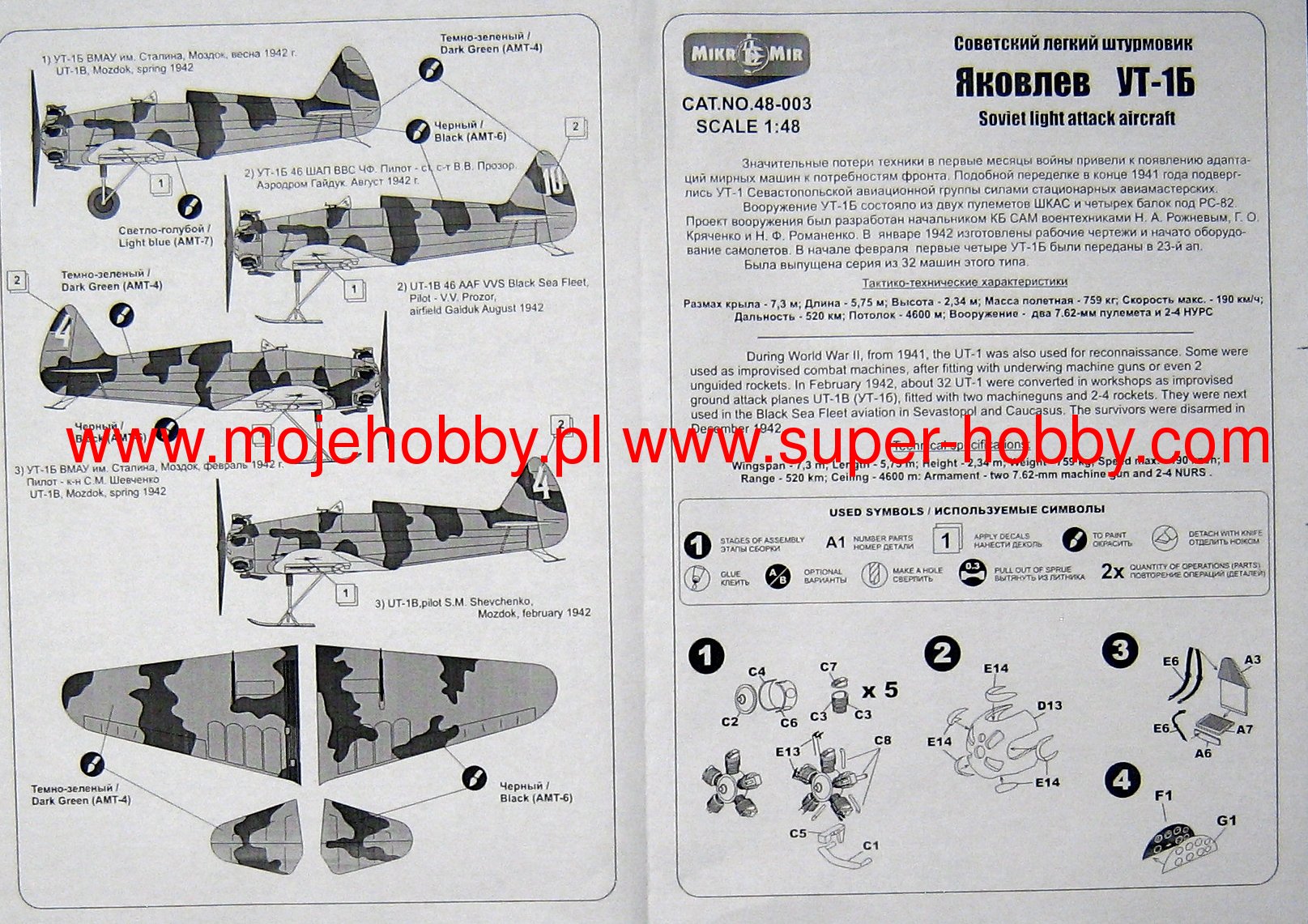 48-003 YAKOVLEV UT-1B SOVIET LIGHT ATTACK AIRCRAFT mikromir 1/48
