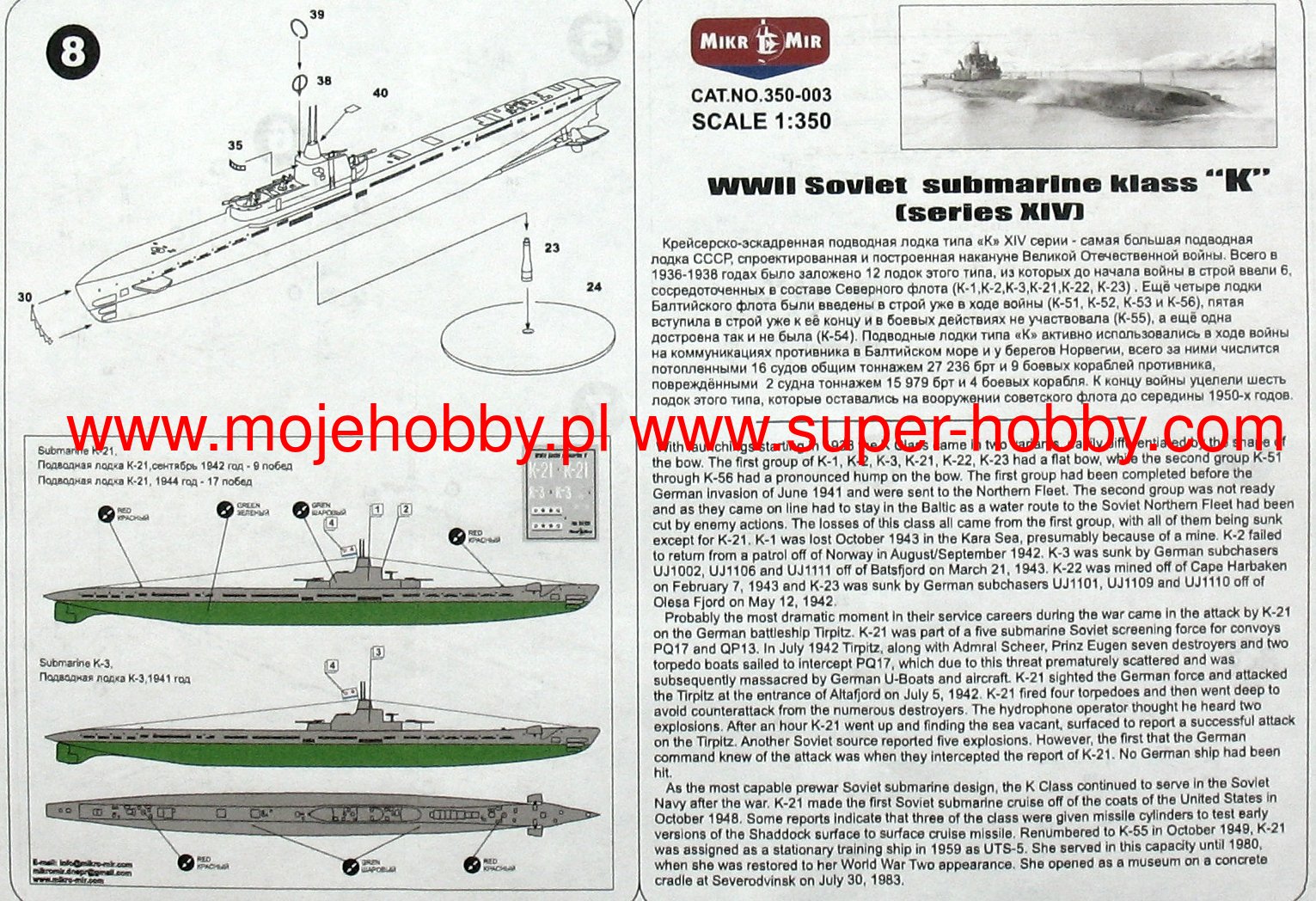 The K-21 was a Soviet submarine from the interwar period and World War II. The keel for this unit was laid in December 1937, the launch took place in November 1938, and the entry into service in February 1941. The total length of the ship at the time of launching was approx. 98 m, width approx. 7.4 m, and the draft - approx. 4.5 m. The maximum underwater speed was 9.5-10 knots. The torpedo armament consisted of 10 533 mm tubes - six in the bow and four in the stern. In addition, the ship had two 100mm cannons and two 45mm cannons. The K-21 belonged to the "K" class of submarines, which consisted of a total of 12 units, the first of which entered service in 1939. Undoubtedly, the units of this class were the largest Soviet submarines of the Second World War. The K-class was designed and built both as large submarines capable of interacting with their own cruiser or battleship-sized surface ships, as well as for independent action against enemy merchant navy. During World War II, many of these units operated in the northern waters of the USSR and collaborated with convoys heading for Murmansk or Arkhangelsk. It is worth adding that the main episode in the course of the K-21 service was his unsuccessful attack on the German battleship Tirpitz, which in turn acted against the PQ17 convoy in June-July 1942.