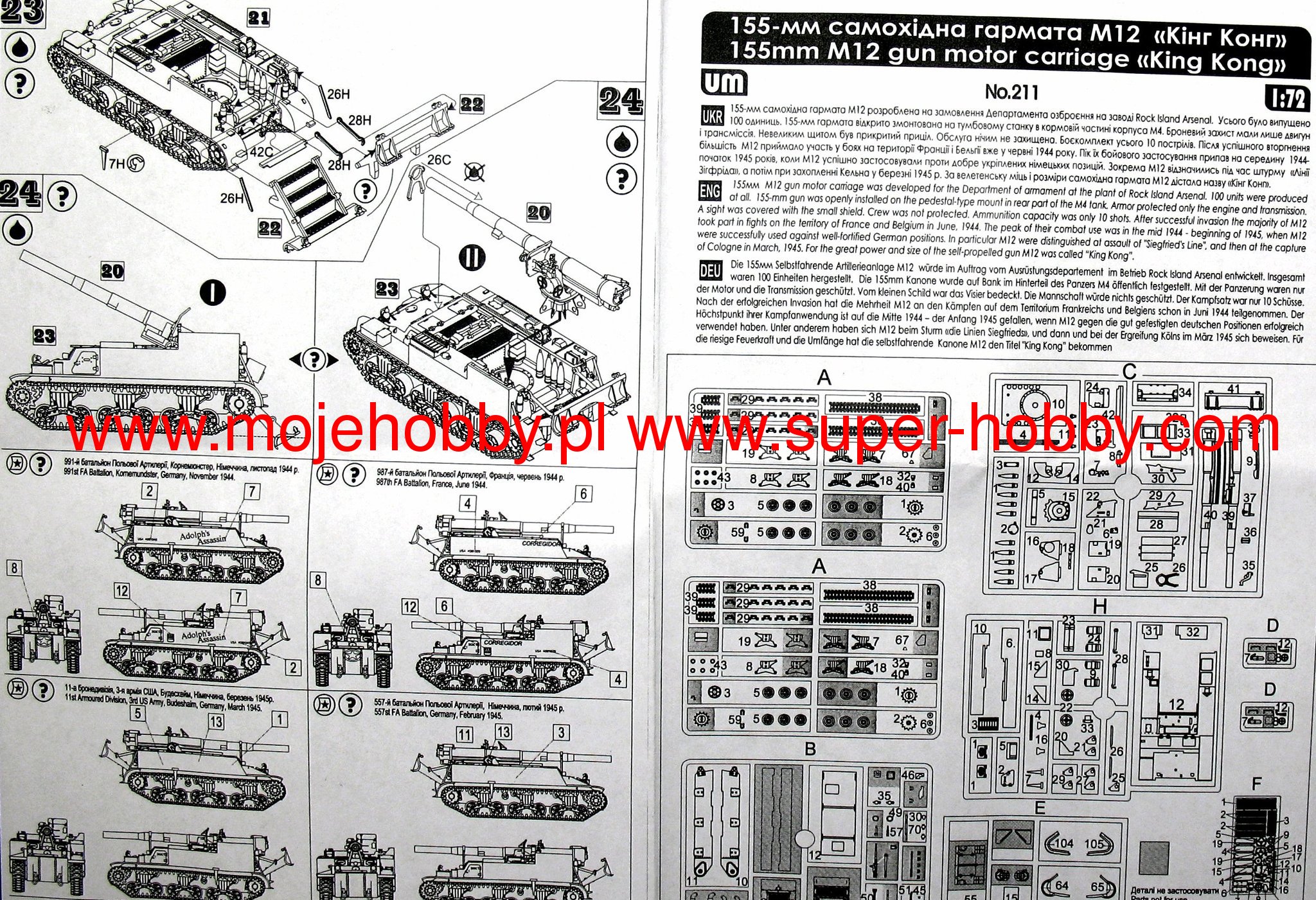 The M12 King Kong was an American self-propelled gun from the Second World War. The first prototypes of the car were built in 1941, and serial production continued in 1942-1943, ending with the production of about 100 examples of this vehicle. The M12 King Kong was powered by an engine Continental R-975-C1 with 400 HP. It was armed with a single M1917 or M1918 or M1918A1 gun - all 155 mm caliber. Work on the M12 began in connection with the pursuit of the US Army command for its far-reaching mechanization and motorization, based on the experience of the first years of World War II. These experiences indicated the necessity to have self-propelled guns of various calibers capable of working with infantry. One of the fruits of the work undertaken in this spirit was precisely M12 King Kong. To shorten the research process and facilitate production, the modernized chassis of the M3 Lee tank was used. The main changes were the placement of the engine in the middle of the hull and the installation of a gun mount at the rear of the vehicle. After minor modifications, the M12 King Kong guns took part in the fighting in Normandy, France and West Germany in the period 1944-1945 as part of field artillery squadrons, most often subordinate to the commands of the American corps. After 1945, they were quickly withdrawn from service for the M40 self-propelled guns built on the chassis of the M4 Sherman tanks.