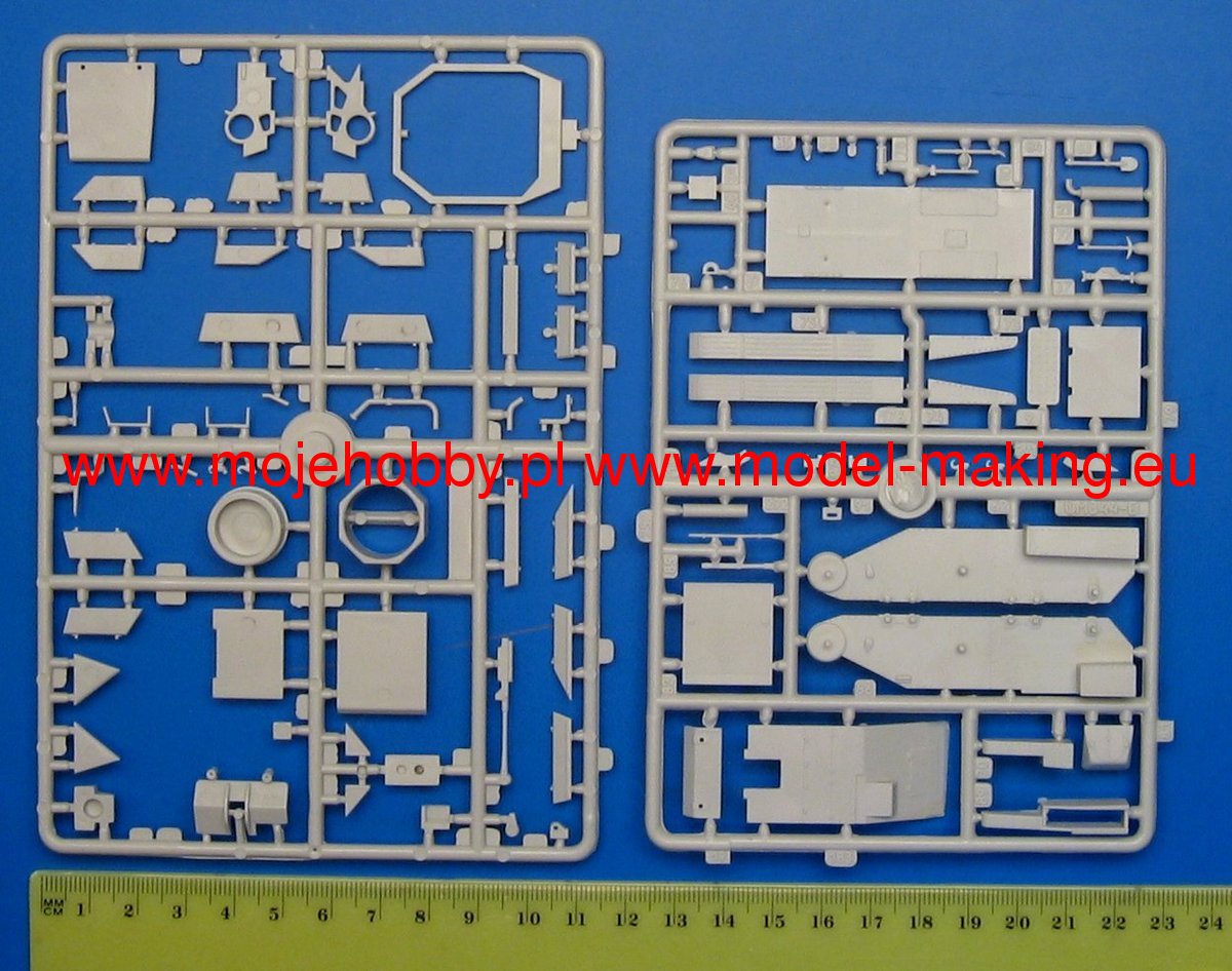 PzKpfw IV (Panzerkampfwagen IV) was a German medium tank from the Second World War. The first prototypes of the vehicle were created in 1936, and serial production continued in the period 1938-1945, ending with the production of about 8,600 vehicles. The D version of the tank was powered by a single Maybach HL 120 TRM engine with a capacity of 300 HP. It was armed with 1 75mm KwK 37 L / 24 gun and 2 7.92mm MG 34 machine guns. The PzKpfw IV was created as a result of a competition announced at the end of 1934 by the German Armaments Department for a medium tank weighing up to 18 tons and armed with a 75 mm gun. The competition was won by the Krupp company, whose vehicle was put into mass production - as it turned out, it was a vehicle that can be safely called the "workhorse" of German armored forces during World War II and one of the most intensively developed and modernized Wehrmacht tanks. Numerous variants of the PzKpfw IV were created in the course of production. Chronologically, the first was the A version, armed with a 75mm short-barreled gun and a 230hp engine. However, versions B and C appeared quickly, in which several significant changes were made: first of all, more powerful engines (265 HP in version B and Maybach HL 120 TRM with 300 HP in C version - which were installed in PzKpfw IV until 1945 year), and the armor of the entire car was improved. The F1 and F2 versions turned out to be a real revolution, in which the frontal armor was increased to 60 mm, and the main armament was changed to the great, long-barreled 75mm KwK 40 L / 43 cannon, which in 1942 and 1943 allowed them to fight any Allied or soviet. The most frequently produced versions of the PzKpfw IV were the G, H and J versions, which were very similar to the F1 and F2 versions. The main armament has not changed significantly (it was still the KwK 40 cannon), as well as the engine and chassis. On the other hand, the armor was slightly strengthened, and from the beginning of 1943 armored screens (Schurzen) were installed on them. Numerous other vehicles were built on the chassis of the PzKpfw IV, such as the StuG IV assault gun, the Nashorn tank destroyer or the Wirbelwind self-propelled anti-aircraft gun. PzKpfw IV tanks were used on almost all fronts of World War II - from the September campaign in 1939, through the campaign in France in 1940, the Barbarossa and Typhoon operations in 1941, the Battle of Kursk in 1943, to the last operations of the German army against The USSR and the Western Allies in 1944-1945.