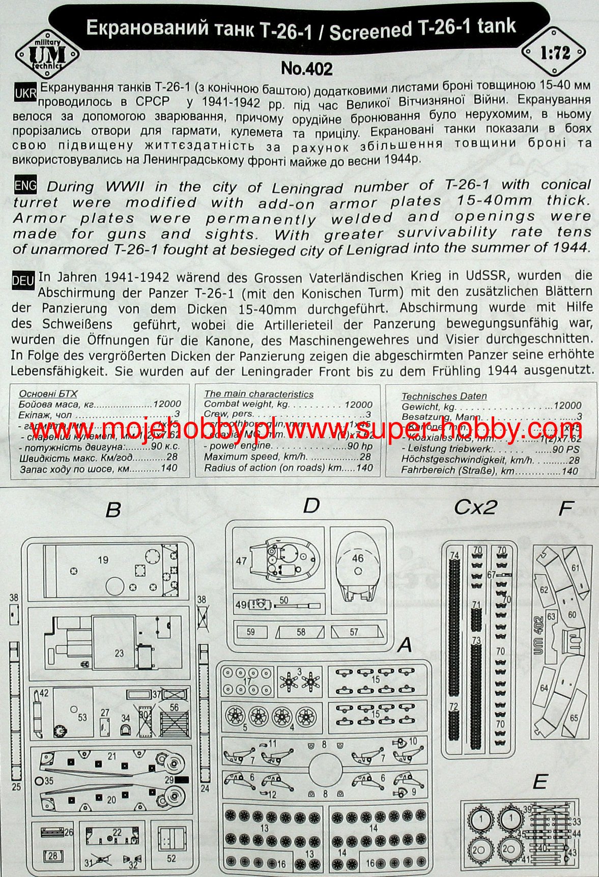 Т-26 советский лёгкий танк межвоенного периода и Великой Отечественной войны. Первые опытные образцы этой машины были изготовлены в 1931 году, а на вооружение машина поступила в 1931-1932 годах. За время производства было выпущено около 12 000 автомобилей этого типа, а также производные версии и специализированные автомобили! Боевая масса танка Т-26 в базовой версии составляла до 8,2 т. Привод обеспечивался одним 12-цилиндровым карбюраторным двигателем ГАЗ мощностью 90-91 л.с. Основное вооружение состояло из одной 45-мм пушки wz.1932 или wz.1934 и от 1 до 3 7,62-мм пулеметов ДТ. По сути, Т-26 был далеко идущим развитием британского Vickers 6-Ton. Машина также была основной советской машиной поддержки пехоты в 1930-х годах и в начале Второй мировой войны. Также стоит помнить, что первые прототипы машины и первые серийные партии имели две башни (Т-26 образца 1931 и 1932 годов), только с 1933 года танк выпускался в однобашенном варианте с 45-мм пушкой в качестве основного вооружение. В ходе производства было создано несколько вариантов Т-26 и специализированных модификаций, в том числе: Т-26 обр. 1938 г. (вариант с новой башней, с наклонными стенками), ЧТ-130 и ЧТ-133 (специализированные машины с огнеметы) и вагон СТ-26 (мостовой танк). Машины Т-26 принимали участие в многочисленных конфликтах 1930-х годов, включая пограничные инциденты в Маньчжурии в 1934-1945 годах и гражданскую войну в Испании (1936-1939 годы). Танки этого типа в значительных масштабах применялись также во время агрессии против Польши в сентябре 1939 г., в ходе Зимней войны (1939-1940 гг.), а также в войне с Японией 1939-1940 гг. Они также широко использовались на начальном этапе германо-советской войны в 1941 году. Стоит отметить, что существуют мнения о том, что последние модификации Т-26 (например, образца 1938 или 1939 года) мало чем уступали немецким танкам во время операций Барбаросса или Тайфун.