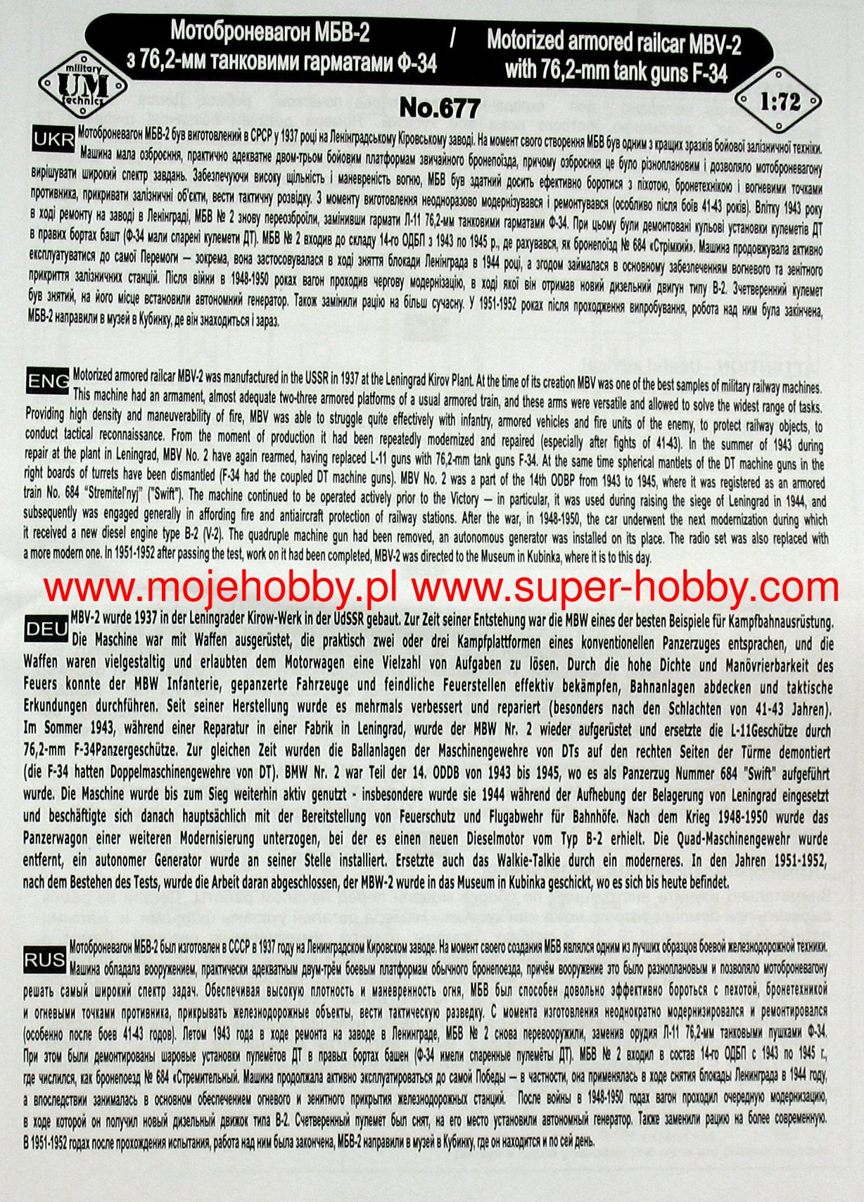 MBV2 is a Soviet armored draisine from the interwar period and World War II. This rail vehicle was produced in 1937 at the Kirov plant in what was then Leningrad (now Saint Petersburg). The MBV2 draisine was a heavily armed, armored vehicle intended for reconnaissance and patrol tasks. Originally, its main armament was three 76.2 mm KT-28 cannons, but they were later replaced by the L-11s of the same caliber to receive the 76.2 mm F-34 guns in 1943. Additionally, the draisine was armed with 10 7.62 mm machine guns. In addition, it also had anti-aircraft armament. The drive was provided by the M-17T engine with a power of up to 500 HP. It is worth noting that in order to speed up the work on the draisine, many mechanical components were used in the T-28 tank. The MBV2 rail vehicle was used in combat during the Soviet-Finnish war (1939-1940) and in the German-Soviet war (1941-1945). In the course of the latter conflict, it was used primarily in the defense of Leningrad.