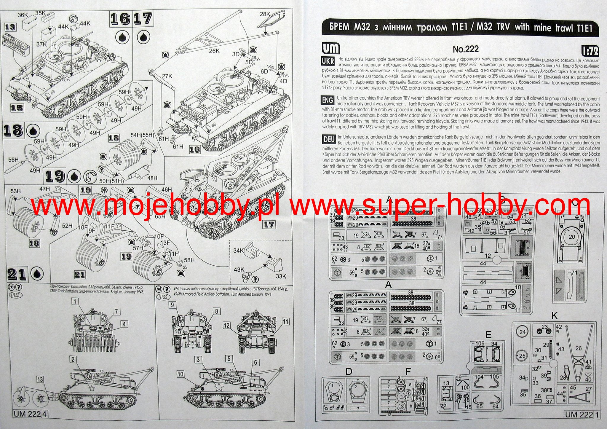 The M32 was an American, tracked technical support and evacuation vehicle from the Second World War. The first prototypes of the car were built in 1943, and serial production was carried out in 1943-1945. The car remained in the line with the US armed forces until 1953. More than 1,500 vehicles of this type were created in the course of production. The car was powered by various drive units, e.g. Continental R-975 or General Motors 6046 engine. The total length of the wagon was 5.9 meters with a width of 2.7 meters. The armament consisted of an 81 mm mortar and two 7.62 and 12.7 mm machine guns. The beginnings of work on the M32 date back to 1942 and assumed the creation of an Armored Recovery Vehicle, which was used on the battlefield. Ultimately, the M32 was based on the M4 Sherman medium tank and used many of its elements, such as the chassis, suspension or the hull. Such a procedure shortened the time of research and development, accelerated production, but also allowed the use of the same spare parts. Several development versions of this tank were created in the course of production, including: M32B1 (the basic version of the vehicle, based on the M4A1 tank), M32B3 (version based on the M4A3 tank) or the M32A1B1 (vehicle with HVSS suspension). The M32 vehicles were used in combat on many fronts of World War II, for example in the Italian campaign (1943-1945) or during the fighting in Normandy and France (1944). The US Army also used them during the Korean War (1950-1953).