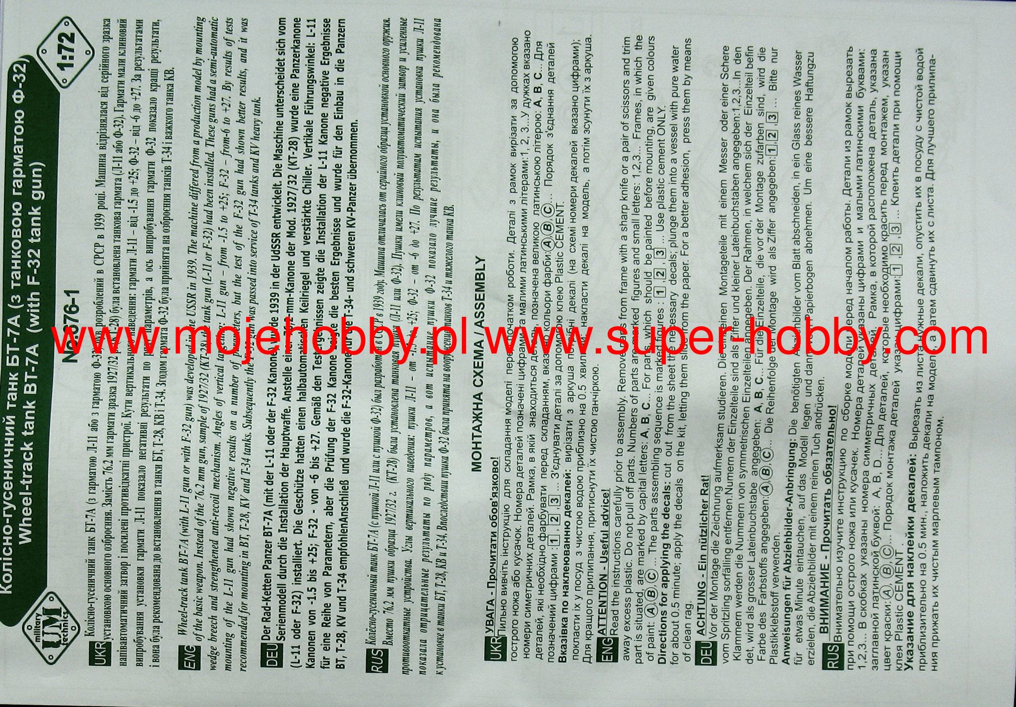 676-01 BT-7A WITH F-32 um 1/72
