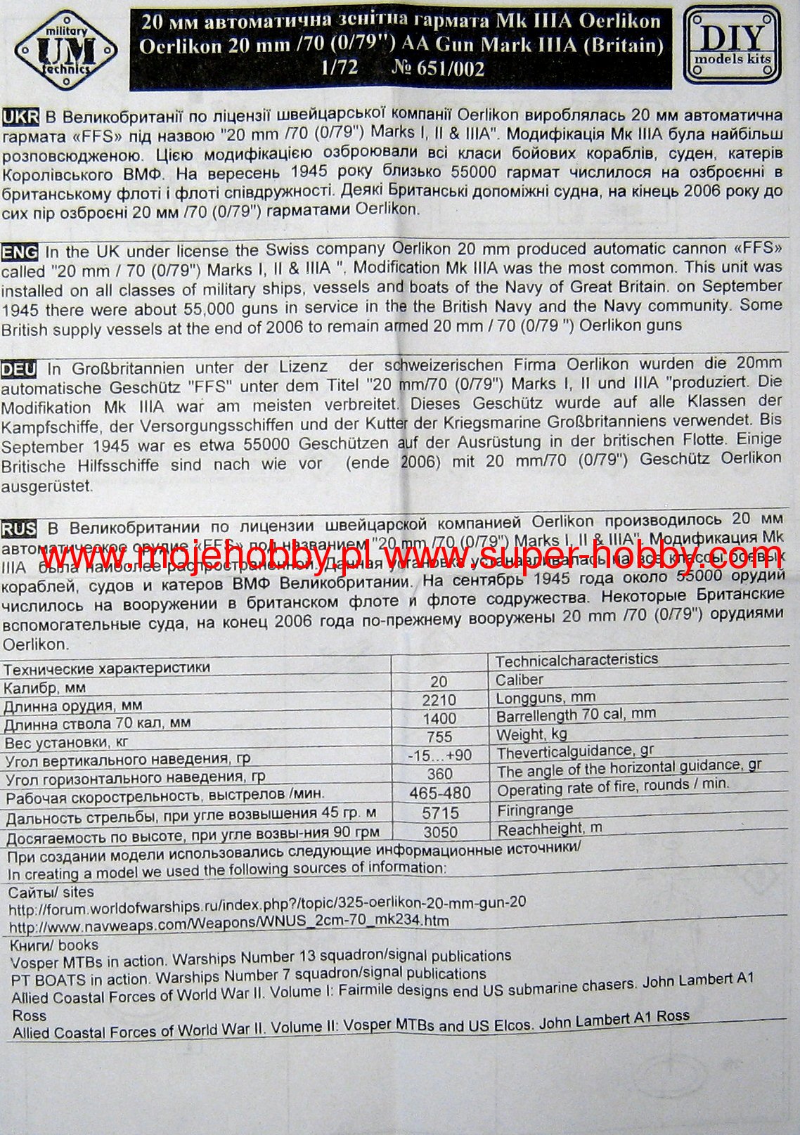 Działko Oerlikon 20 mm to automatyczna armata przeciwlotnicza kalibru 20 mm opracowana w 1914 roku, ale pozostająca w użyciu w wielu krajach do dnia dzisiejszego. W wersji L70 donośność maksymalna broni dochodziła do ok. 4.400 m, przy czym zasięg skutecznego strzału nie przekraczał 1000 metrów. Szybkostrzelność teoretyczna broni sięgała natomiast 450 strz./min, przy czym w warunkach bojowych można było osiągnąć do 320 strz./min. Działko Oerlikon 20 mm zostało zaprojektowane przez Reinholda Beckera już w 1914 roku i w okresie I wojny światowej było produkowane na użytek niemieckiej armii. Jednak w 1919 r. na mocy traktatu wersalskiego, Niemcy nie mogły produkować tego typu broni, a patent na działko został wykupiony przez firmę SEMAG ze Szwajcarii, która później została przejęta przez firmę Werkzeug Maschinenfabrik Oerlikon i to ten ostatni człon nazwy tej firmy dał nazwę prezentowanej armacie. W okresie międzywojennym licencja na produkcję tego działka trafiła do wielu krajów europejskich, a w toku II wojny światowej produkcja tej broni została podjęta w USA oraz Wielkiej Brytanii. Tam również konstrukcja działka została uproszczona przez polskich inżynierów, prowadząc do powstania działka Polsten. Działko Oerlikon 20 mm w różnych wariantach jest wykorzystywane do dnia dzisiejszego np. przez amerykańską straż wybrzeża (ang. US Coast Guard). Co oprócz modelu będę potrzebować do jego sklejenia?