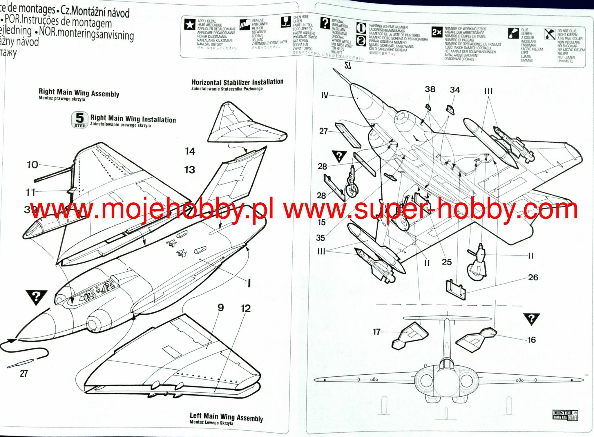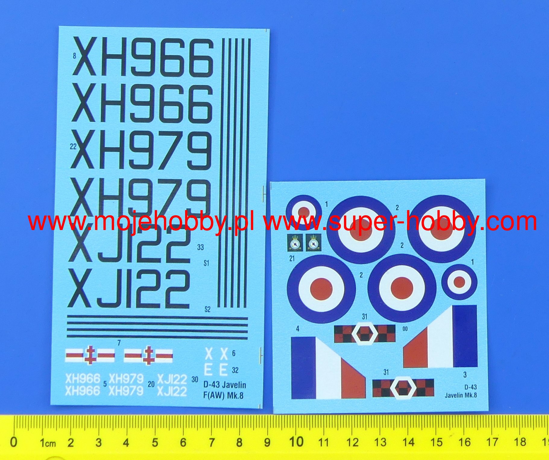Note: Comany Mistercraft frequently changes, without any notice, the decals that come with the model, so they may differ from the photos and descriptions on our website. If you need a specific version, please let us know about that by entering the appropriate notice in the comments field when placing the order. The Gloster Javelin is a British jet-propelled two-seater twin-engine interceptor. Parallel to the development of the Meteor aircraft, the Gloster company was working on a modern delta-wing jet fighter called Javelin, which was flown in November 1951. Due to its layout, the Javelin had slightly different properties from classic aircraft, especially longitudinal stability at low speeds. Due to numerous doubts related to this in the design office of the plant and subsequent modifications, the first Javelins were delivered to the RAF in 1956. where they served as high-altitude interceptors until 1961. Ultimately, the aircraft did not prove its superiority over the Lightning aircraft, and was permanently decommissioned in 1964-1968. The most widely produced versions are FAW.7, FAW.8 and FAW.9. Technical data (version FAW.9): length: 17.15 m, wingspan: 15.85 m, height: 4.88 m, maximum speed: 1140 km / h, climb speed: 27.5 m / s, maximum range: 1500 km, weapons : fixed - 4 30mm ADEN cannons, outboard - usually four de Havilland Firestreak air-to-air missiles.