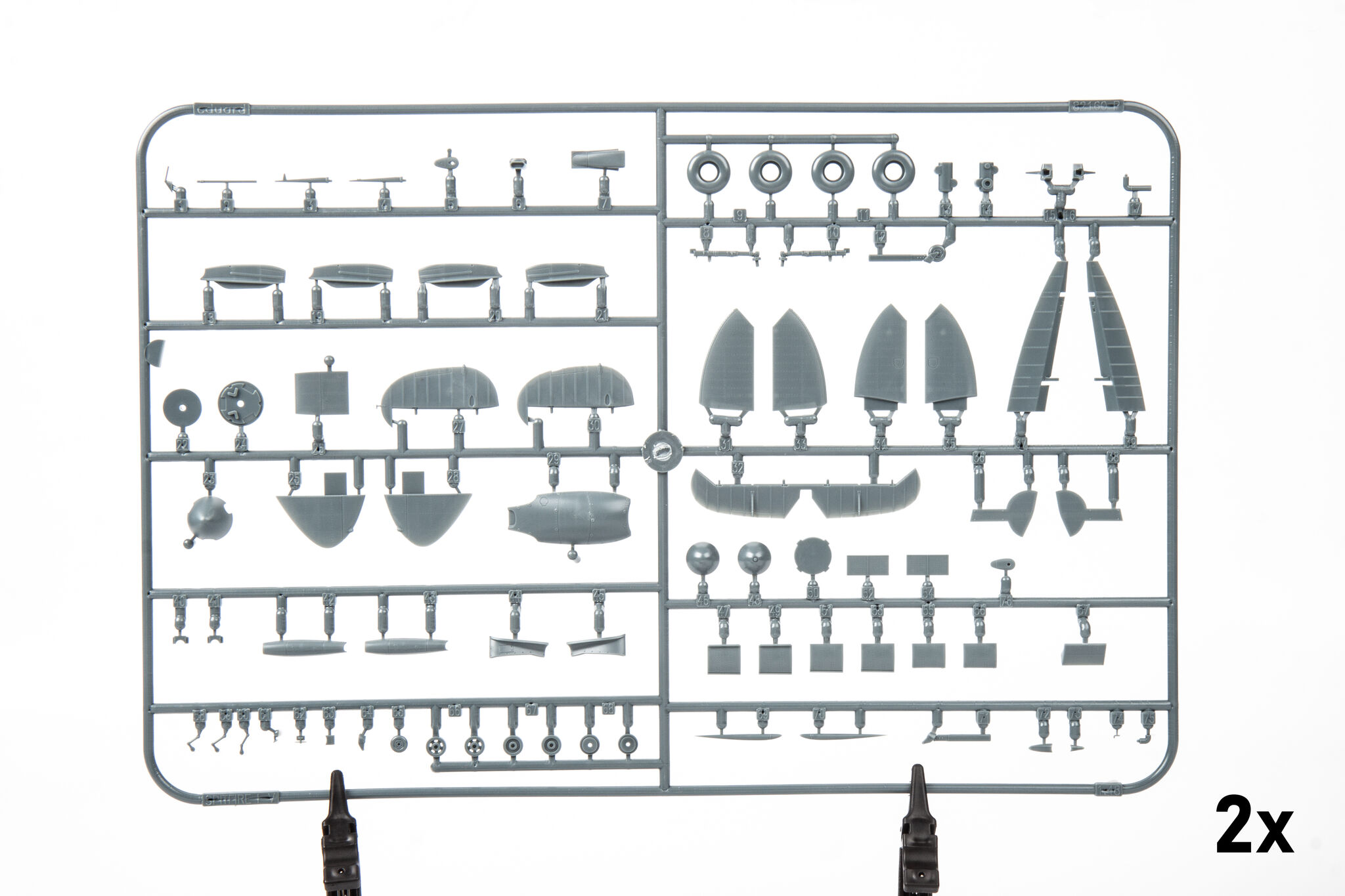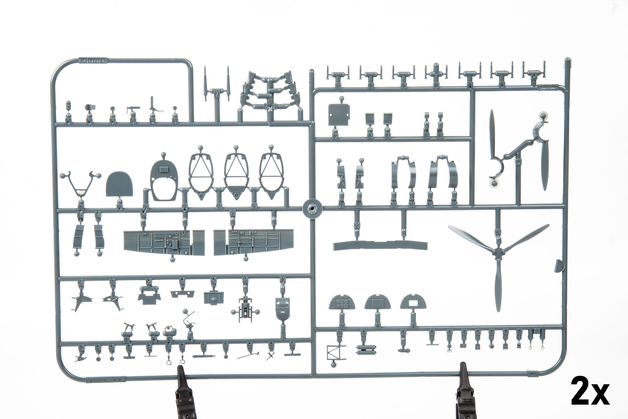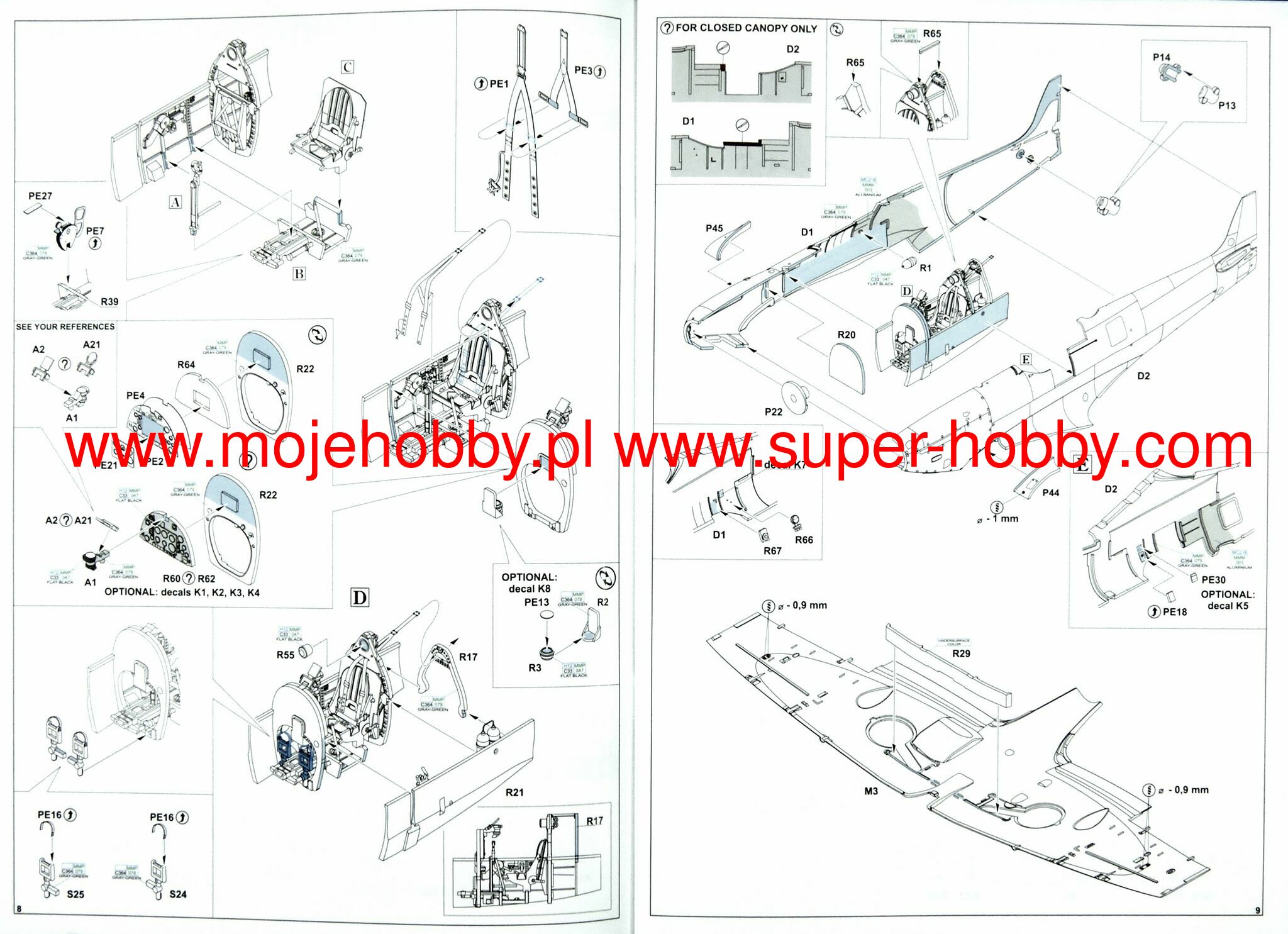 Supermarine Spitfire is probably the most famous British fighter from the Second World War. It was an all-metal machine with a low wing configuration, characteristic elliptical wings, a classic tail and a retractable landing gear. The prototype flight took place on March 5, 1936. The Spitfire proved to be the RAF's staple of the war, which continued to do well after the war, remaining in production for 10 years. The history of the Spitfire began on the drawing desk of RJ Mitchell, Supermarine's lead designer. The first machines went to RAF units in 1938, but when the Battle of Britain began in the summer of 1940, there were already 19 squadrons of modern fighters at the airfields - together with the slightly older Hurricanes of the Islands, 600 aircraft were defending. With the expansion of hostilities, the Spitfire served wherever the RAF operated in the Far East, North Africa and Italy, during the Normandy landings and fighting in France, and finally during the operation in Germany in 1945. For many Britons, he became a symbol of victory in World War II. This wonderful machine has at least a dozen production versions. The most important of them are, among others the first mass-produced Spitfire Mk.I powered by a 1030hp Rolls-Royce Merlin II engine. It was above all this machine that made such an excellent contribution to the Battle of Britain. Many versions of this model have been developed, including PR Mk IA (reconnaissance version) or PR.IG (armed reconnaissance version). Another interesting version was the Spitfire Mk.V with a Rolls-Royce Merlin 45 engine with 1440HP. Later, Merlin 50 engines were also assembled. Serial production of this version started in 1941 and was the RAF's response to the appearance of the Messerschmitt Bf-109F. Another very successful version is the Spitfire Mk.IX, powered by a Merlin 61 engine with a 4-blade propeller. It was created as an opponent to the Focke-Wulf Fw-190 and was put into production at the end of 1941. This version was modified many times and, for example, in 1944 it got a new gyro sight, an enlarged rudder or a different wing system. Another major version is the Spitfire Mk.XIV with a Rolls-Royce Griffon 61 engine and a five-bladed propeller. Serial production started in October 1943. One of the last series produced was the Mk.21 version. This version had a Griffon 61 engine, a strongly reinforced structure and sheathing, the wings were extended, increasing their flying surface. Mass production started in March 1945. Technical data (Mk.XIV version): length: 9.14m, wingspan: 11.23m, height: 3.05m, maximum speed: 717km / h, rate of climb: 18.5m / s, practical ceiling: 13,200m, range maximum: 1815 km, armament: fixed - 4 7.7mm machine guns and 2 20mm Hispano Mk II cannons, suspended - up to 225 kg of bombs. 3_edu11157_instruction_sheet.pdf