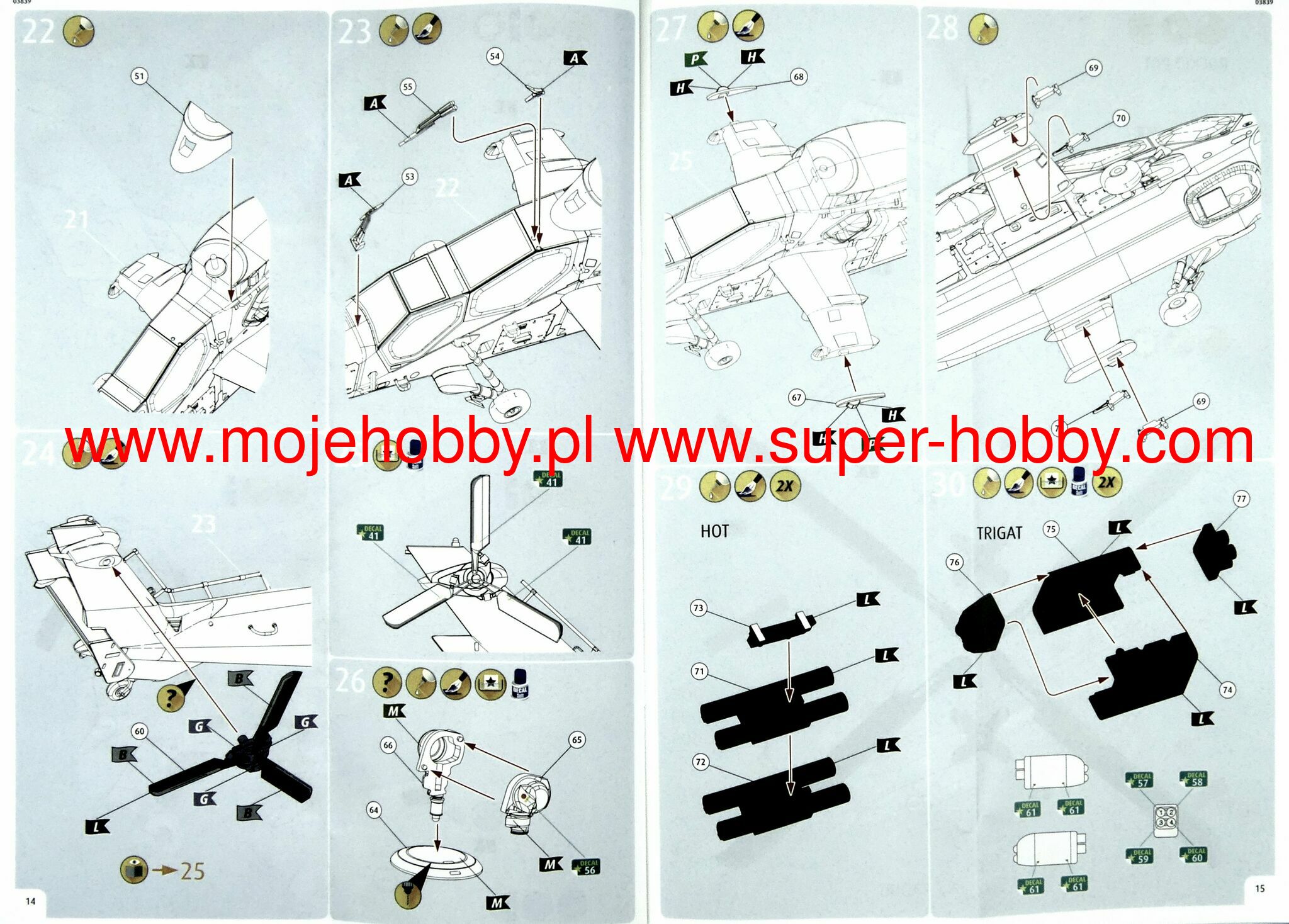 Eurocopter Tiger is a twin-engine attack helicopter of German, Spanish and Italian production, with a metal structure in a classic arrangement with a main rotor and a tail rotor on the beam. In the basic version, the drive is provided by two Rolls-Royce / MTU 390 engines with 1183 HP each. The flight of the first prototype took place in 1991, and serial production, which only started in 2002, is still ongoing. At present (2017), it is estimated that approx. 100 copies of this helicopter have been produced. The Eurocopter Tiger was created in response to a competition announced in 1984 by the French and German Ministry of Defense for a new attack helicopter for the armies of both countries. In order to reduce costs, a consortium of Aerospatiale and MBB was established. In the course of serial production, four specialized development versions were created, produced in - so far - in relatively short batches. One of them is the UHT version used by the German army as an anti-tank helicopter. Interestingly - this version does not have a plot. Another is the version of the HAP used by the armies of France and Spain as a close support and escort helicopter. In general, all versions of the Eurocopter Tiger are very similar to each other and differ mainly in their weapons and avionics. Eurocopter Tiger have been used in combat in Afghanistan by France, Germany and Spain since 2009.