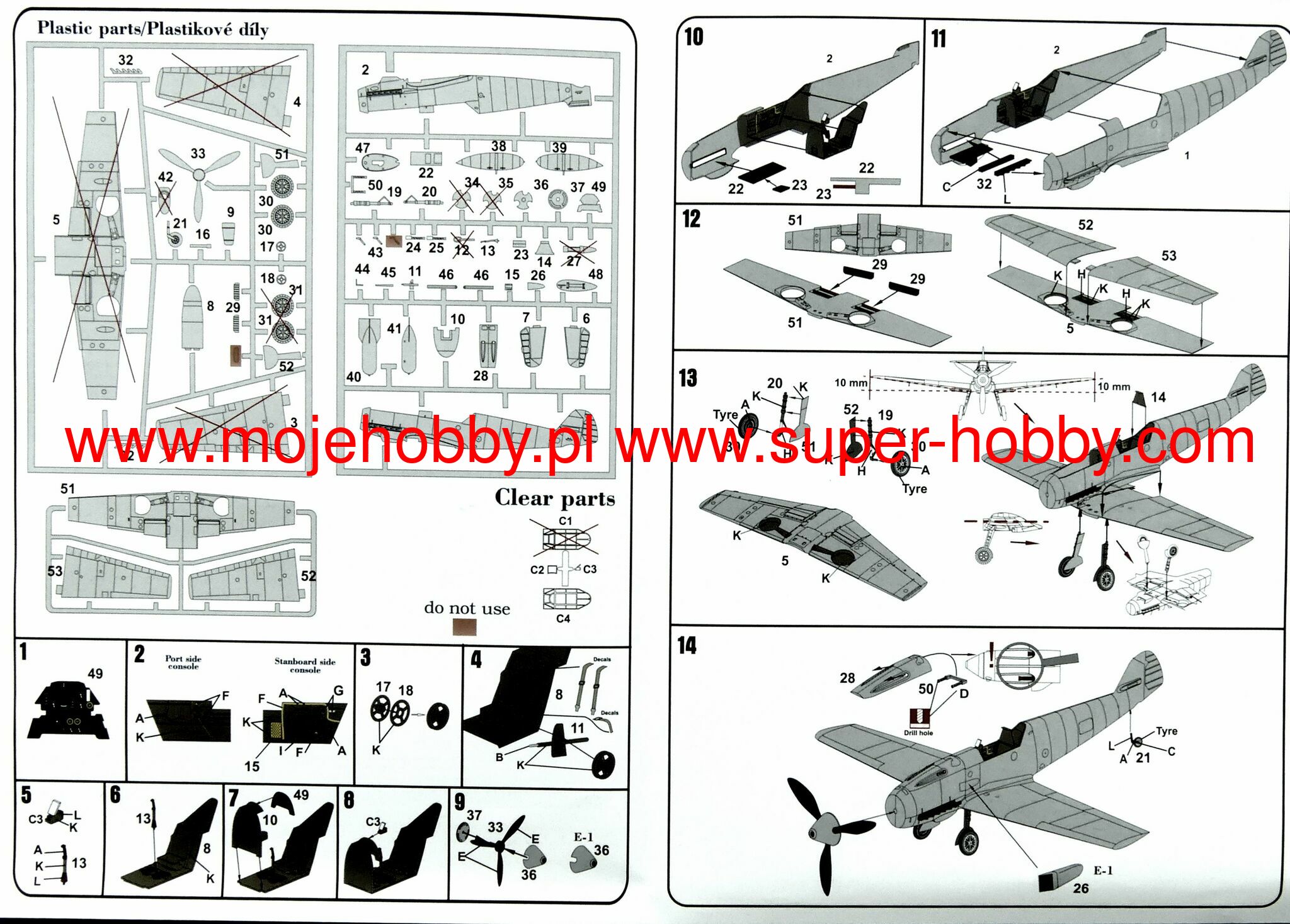 The Messerschmitt Bf-109 is a German metal-structure single-engine fighter in a low wing configuration with a classic tail. It turned out to be the basic and most produced Luftwaffe fighter during World War II. The flight of the prototype took place on May 29, 1935, and serial production continued in the years 1936-1945. In total, it is estimated that a total of about 35,000 Messerschmitt Bf-109 fighters of all varieties were produced, many of which ended up in the Czech and Israeli air forces after the war. The roots of the Bf-109 go back to the competition announced in 1933 by the Luftwaffe for a new fighter plane. In competition with the He-112, the Bf-109 project initially lost, but thanks to Willie Messerschmitt's intrigues, the project could continue and eventually he was the winner of the competition, becoming the Luftwaffe's primary fighter. Several main variants of the Bf-109 were developed in the course of production. The first pre-production series was the Bf-109B (Berta) with different versions of the Junkers Jumo 210 (A or Da) engine. They were tested in Spain from 1937 during the Civil War. The next version is the Bf-109C (Caesar). They had a different engine than the B version, and extensive armament consisting of two 20mm and 2 HP 7.92mm cannons. These machines also fought in the skies of Spain. The third version is the Bf-109D (Dora) with the Junkers Jumo 210 Da or Daimler-Benz DB 600 engine. It fought in the September campaign, but at the turn of 1939/1940 it was replaced by the E version. The most famous model was the Bf-109E (Emil) with a Daimler-Benz 601A or N engine. It was the first to use a three-blade, not a two-blade propeller. Bf-109E fought in the French campaign, over England, and in North Africa and on the Eastern Front. The ace who started his career on the Bf-109E was the famous Adolf Galland. The next version is the Bf-109F (Friedrich), which, according to the German pilots, was the most aerodynamically perfect. It sowed the changed shape of the fuselage, wings, cabin fairings, but no new engine was used. It was put into service at the turn of 1940/1941. As part of the development of the design, further Bf-109 specifications were developed, of which the G (Gustav) version was produced in the largest number of copies. The most important change increasing the machine's performance was the installation of a new 12-cylinder Daimler-Benz DB605A engine with 1475HP. The armament of the Bf-109G was a pair of 13mm machine guns located in the fuselage in front of the cockpit fairing, and the MG151 20mm or heavier MK108 30mm cannon. The last mass-produced version was the Bf-109K (Kurfirst), which production started in October 1944. A Daimler-Benz DB 605DB or DC unit was used as the engine. The Bf-109K was the fastest version produced during World War II, reaching up to 730 km / h. Apart from that, two versions were created - H and Z, but they were rather experimental versions and their mass production did not start. Subsequent improvements in propulsion and armament made the Messerschmitt Bf-109 one of the most dangerous fighters of World War II, and at the same time showed the great potential of the slightly angular airframe created by Willi Messerschmitt. Technical data (version Bf-109 G-6): length: 8.95 m, wingspan: 9.92 m, height: 2.6 m, maximum speed: 640 km / h, rate of climb: 17 m / s, maximum range: 850 km, maximum ceiling 12000m, armament: fixed - 2 MG131 13mm machine guns and 1 MG151 20mm cannon, suspended - 250 kg bombs, or 2 Wfr missile launchers. Gr. 21.