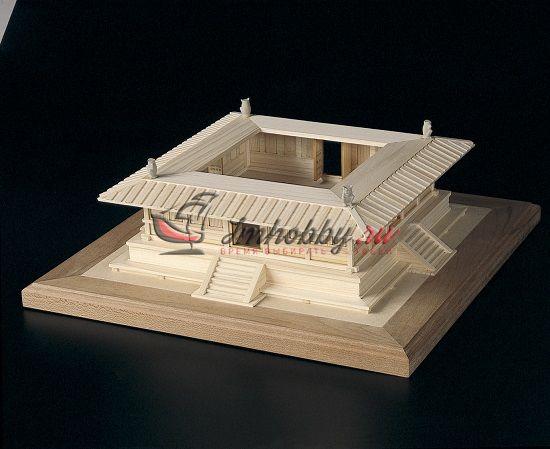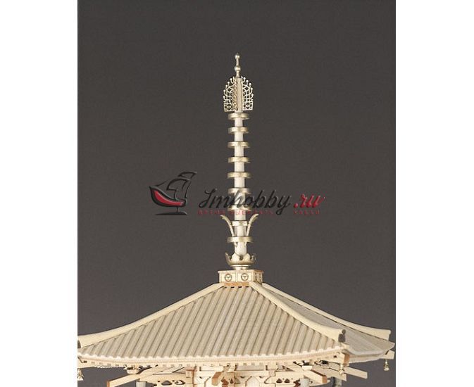 Хорю-дзи буддийский храм в городе Икаруга. Храм основал принц Сётоку, и он получил название Икаруга-дэра. Строительство, в котором принимали участие основатели компании Конго Гуми, было закончено в 607 году. Храм был посвящён Якуси, Будде Медицины, в честь отца принца.Пагода из пяти ярусов - Годзюното - представляет собой эталон свободной композиции. Контур здания с пересекающимися стропилами и расположенными под углом сваями, создаёт ощущение воздушности. Вся пагода имеет высоту 33 с половиной метра, из них 9,3 метра составляет шпиль. Шпиль - значимая часть пагоды с точки зрения символичности строения. Он заканчивает главную колонну, где было хранилище сокровищ, символизирующих прах Будды, а остальные части постройки служат основой для этой колонны. На вершине шпиля находится символ небесных сфер в буддизме - 9 колец. Площадь каждого яруса пагоды снизу вверх уменьшается пропорционально. Контуры крыш направлены вниз и изогнуты, что производит впечатление их горизонтальности.Спецификация:Масштаб: 1:75Длина: 260 ммВысота: 470 ммШирина: 260 мм
