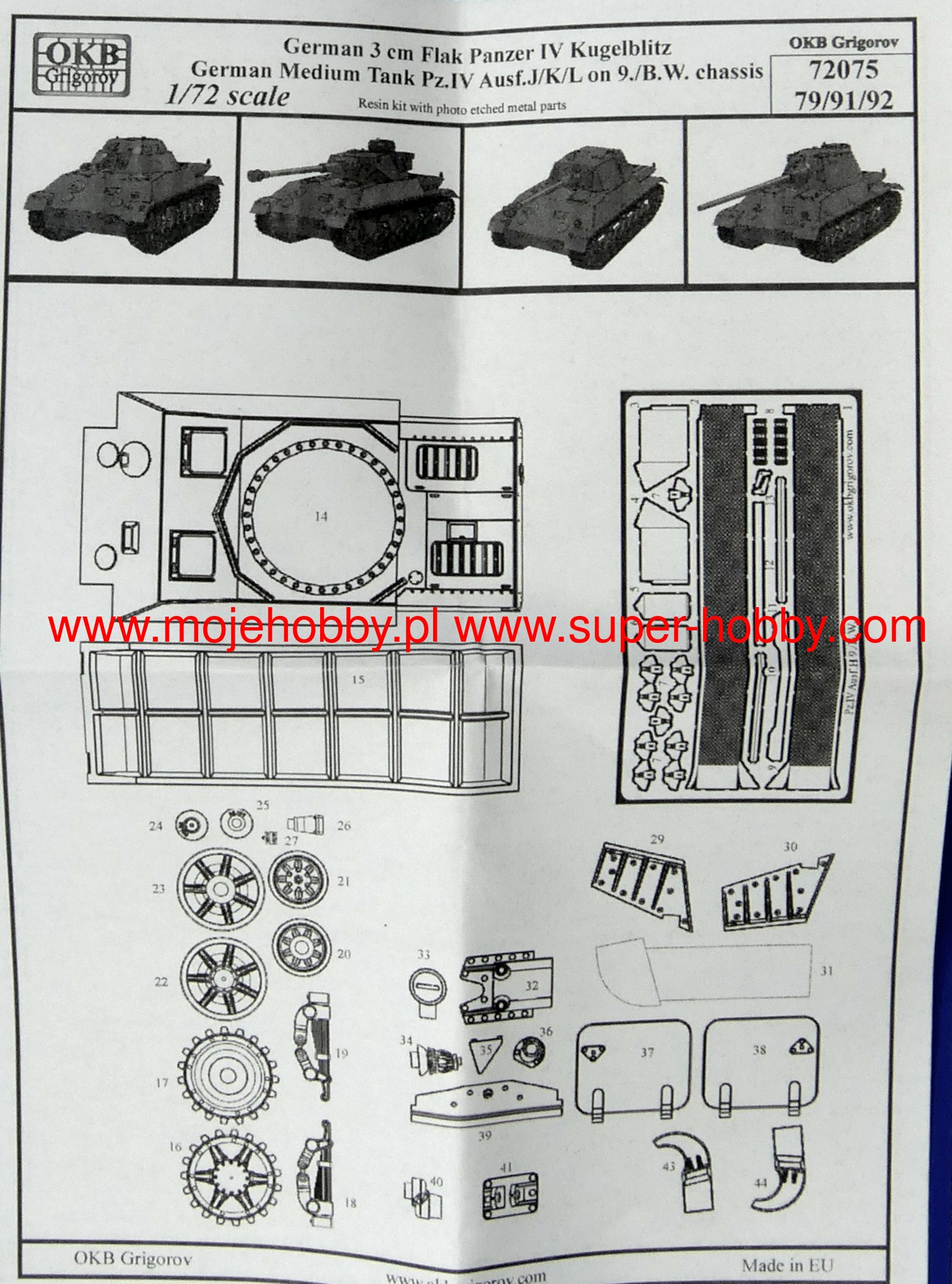 V72092 GERMAN MEDIUM TANK PZ.IV AUSF.L, 9./B.W. DEVELOPMENT okb grigorov 1/72