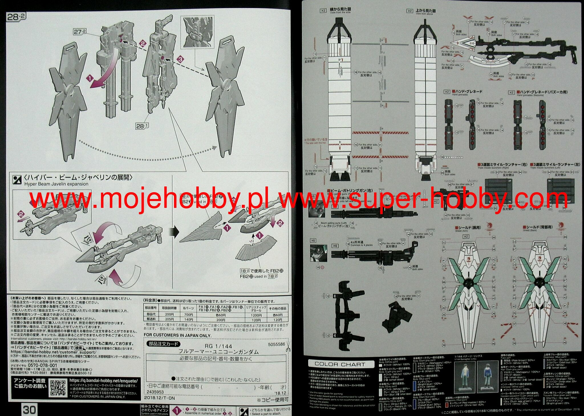 RG-Real Grade In July 2010, Bandai introduced the 1:144 scale Real Grade series as part of the 30th anniversary of the "Gundam 30th Anniversary" series. The series is characterized by elements and construction from the MG and PG series. It has an internal skeletal frame and has a greater range of motion than the HG series. Assembly difficulty level: Intermediate Number of elements: over 250+ Size: 13cm Contents of the package GUNPLA Model Assembly instructions Short instruction manual in Polish Stand* Stickers to enhance the model *Not all models include a stand Special features of the RG series: Scale 1/144, model size 130 mm, more than 250 elements to assemble, medium level.