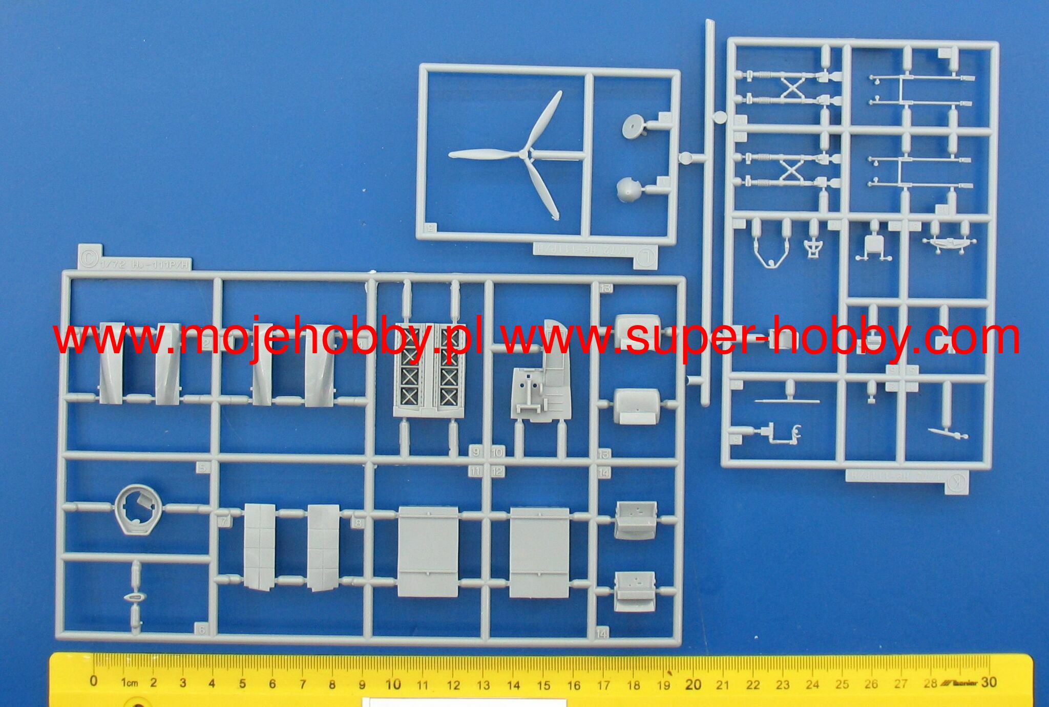 Heinkel He-111 to niemiecki, dwusilnikowy œredni bombowiec o konstrukcji metalowej, półskorupowej, w układzie dolnopłata z okresu II wojny œwiatowej. Oblot protypu miał miejsce 17 listopada 1934 roku. W okresie 1934-1935 powstały trzy prototypy przeznaczone dla Luftwaffe o oznaczeniach V1, V2 oraz V3, z których ostatni stał się podstawš do stworzenia partii przedprodukcyjnej (He-111A-0), okazał się jednak nieudany, ze względu na za słabe silniki. Spowodowało to dalsze prace badawcze i eksperymenty z innymi silnikami, co ostatecznie doprowadziło do powstania He-111H, który od 1940 roku był produkowany na wielkš skalę. Jako jednostkę napędowš wykorzystywano (od wersji H-3) dwa silniki Junkers Jumo 211 o mocy 1100 KM każdy. To właœnie ta wersja na szerokš skalę była wykorzystywana w czasie bitwy o Anglię w 1940 roku. W toku II wojny œwiatowej powstało kilkanaœcie wersji He-111, a dodatkowo każda z nich miała swoje modernizacje. Najważniejsze, oprócz wspomnianej „H”, która pełniła także zadania bombowca torpedowego (He-111H-6) oraz np. samolotu oznaczajšcego cele innym bombowcom (He-111 H-18) to wersja „P” posługujšca się dwoma silnikami Daimler-Benz DB 601A-1 i wykorzystywana min. w czasie kampanii wrzeœniowej. Natomiast najbardziej oryginalna to wersja He-111Z „Zwilling" (niem. bliŸniaki) będšca przykładem nietypowego "połšczenia" dwóch bombowców He111. Zadaniem tej nietypowej maszyny było holowania gigantycznego szybowca Me 321 lub trzech szybowców Go-242. Pojawiła się także wersja He-111Z2, która miała przenosić 4 pociski kierowane Henschel Hs-293, ale nie doczekała się ona użycia bojowego. W sumie powstało ok.6500 sztuk wszystkich wersji He-111. Dane techniczne (wersja He-111H-6): długoœć: 16,4m, rozpiętoœć skrzydeł: 22,6m, wysokoœć: 4m, prędkoœć maksymalna: 440km/h, prędkoœć wznoszenia: 4,3m/s, zasięg maksymalny: 2300km, pułap maksymalny 6500m, uzbrojenie: stałe-7 karabinów maszynowych MG15 lub MG81 kal.7,92mm, jedno działko MG FF kal20mm oraz jedno działko MG131 kal.13mm , podwieszane-do 2000 kg bomb. Co oprócz modelu będę potrzebować do jego sklejenia?