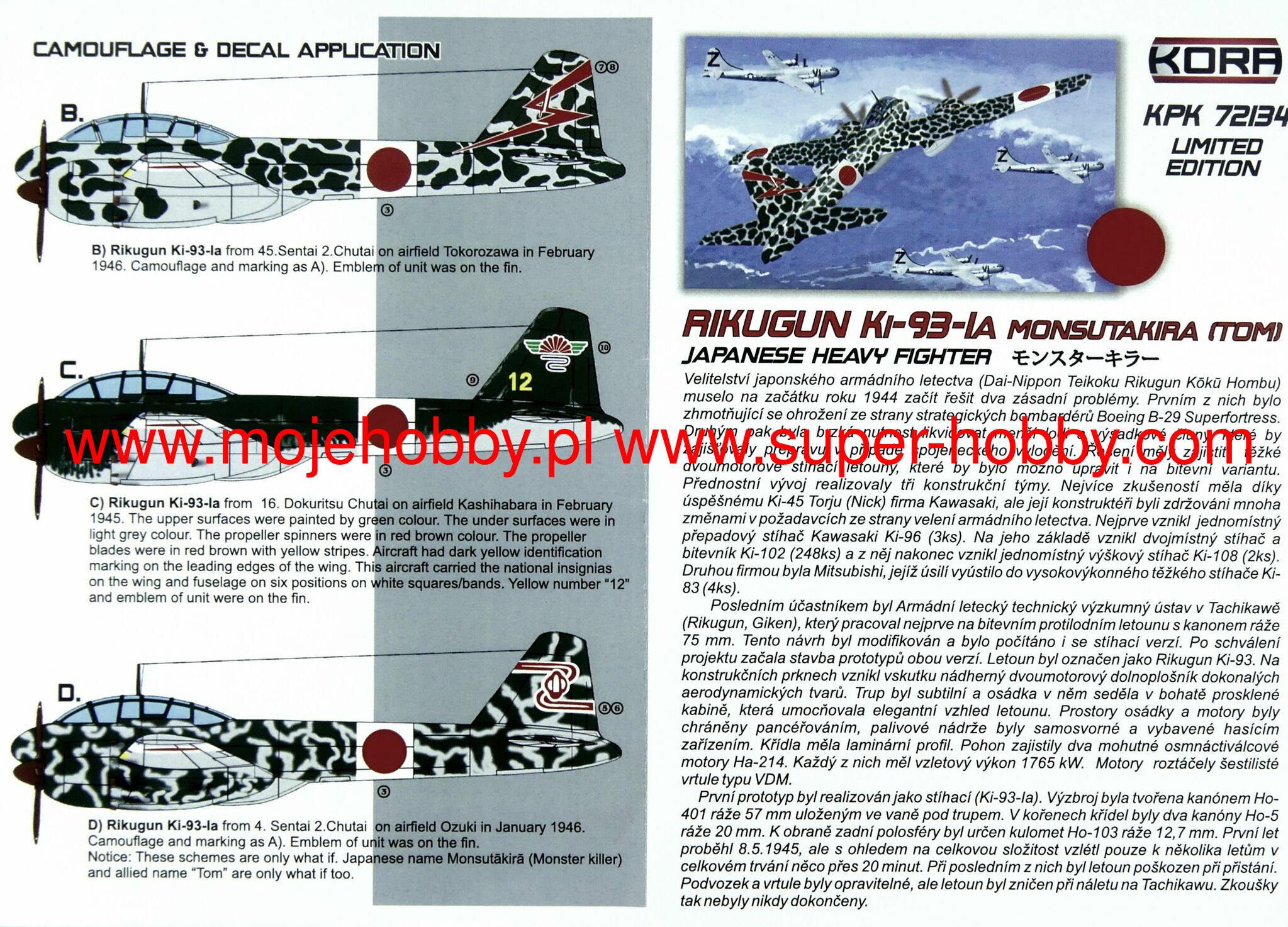 KPK72134 RIKUGUN KI-93-1A MOSUTAKIRA - HEAVY FIGHTER