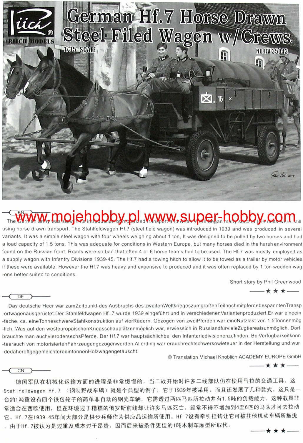 RV35043 GERMAN HF.7 HORSE DRAWN STEEL FIELD WAGE W/2HORSES & 2 FIGURES