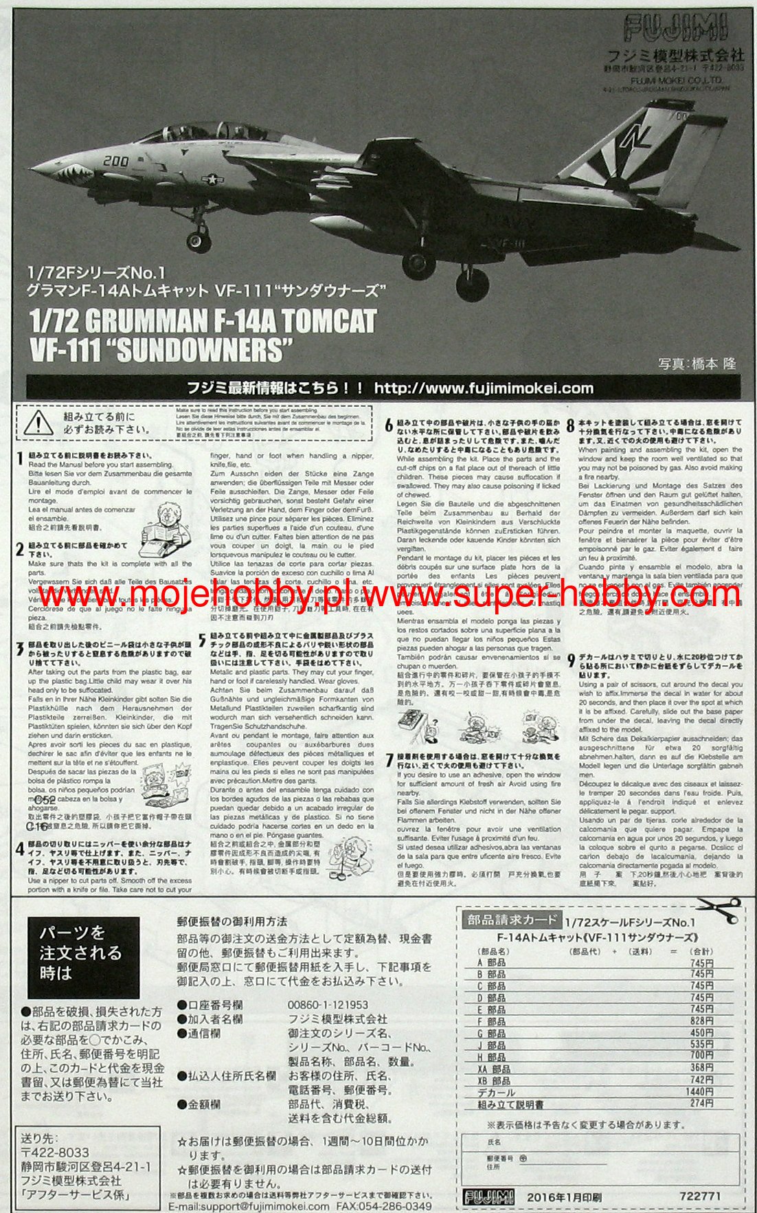 F-1 F-14A TOMCAT VF-111 SUN DOWNERS fujimi mokei 1/72