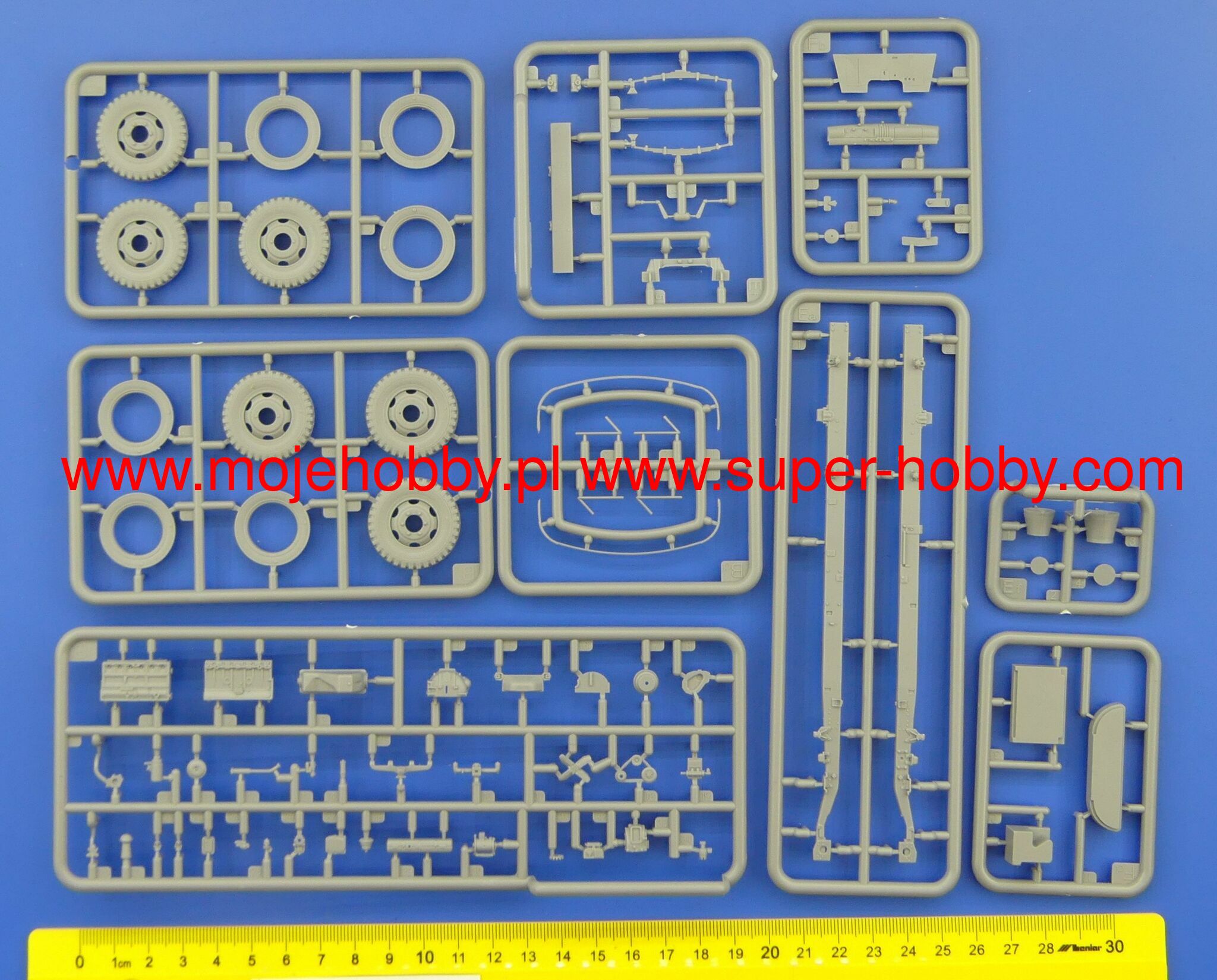 HIGHLY DETAILED PLASTIC MODEL KIT PHOTO-ETCHED PARTS INCLUDED CLEAR PLASTIC PARTS INCLUDED DECAL SHEET FOR 5 OPTIONS DOORS AND HOOD CAN BE ASSEMBLED IN OPEN OR CLOSED POSITION HIGHLY DETAILED ENGINE COMPARTMENT, TRANSMISSION, BRAKE, STEERING SYSTEMS BENCH POSITION FOLDED OR UNFOLDED 2 FIGURES INCLUDED